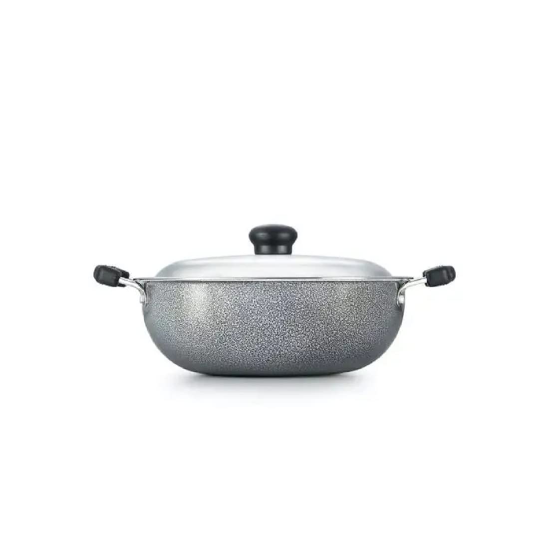 • Material: Alumunium; Size: 250 mm, 3.5L; Base type: Gas Stove Compatible; Base thickness (in mm): 2.7; Included components: Kadai 250 mm (1U); Colour: Black;