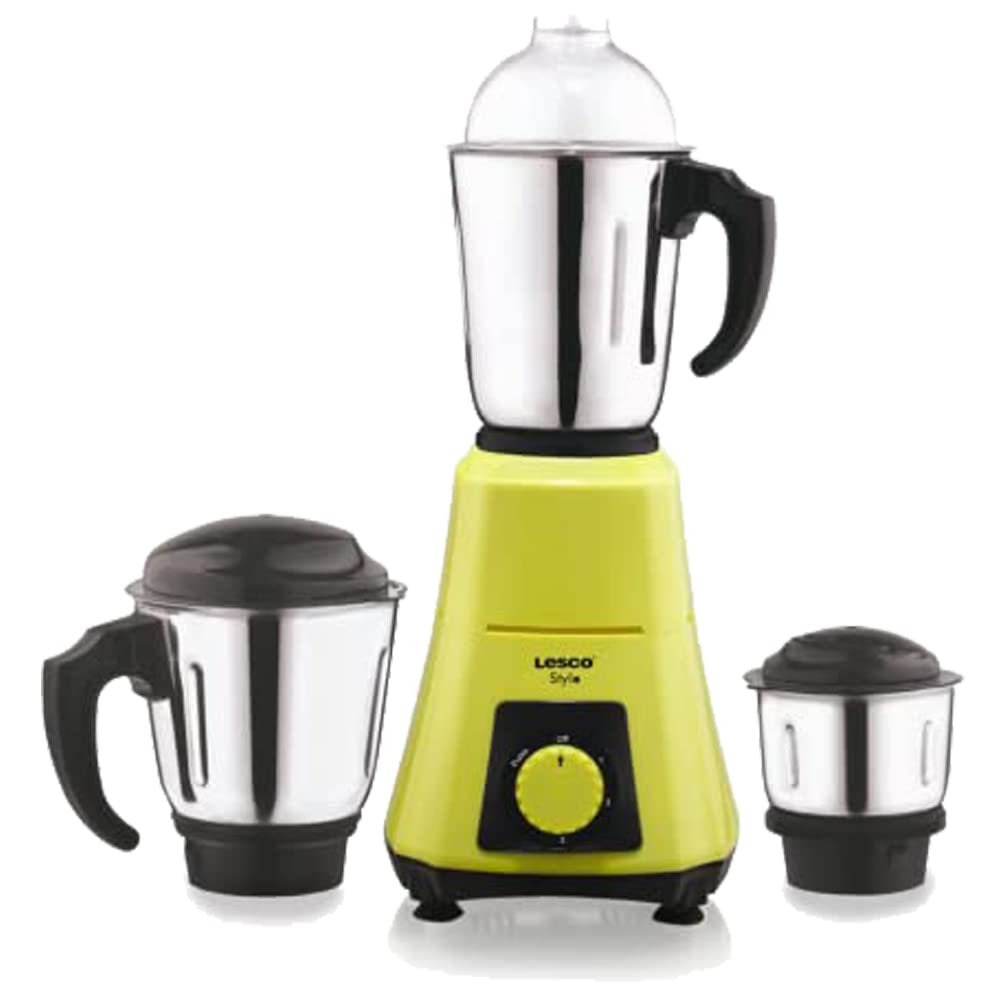 Lesco Stylo Mixer grinder 550 watts with copper motor and 3 stainless steel jars for dry grinding, wet grinding and making chutney (Lemon Yellow)