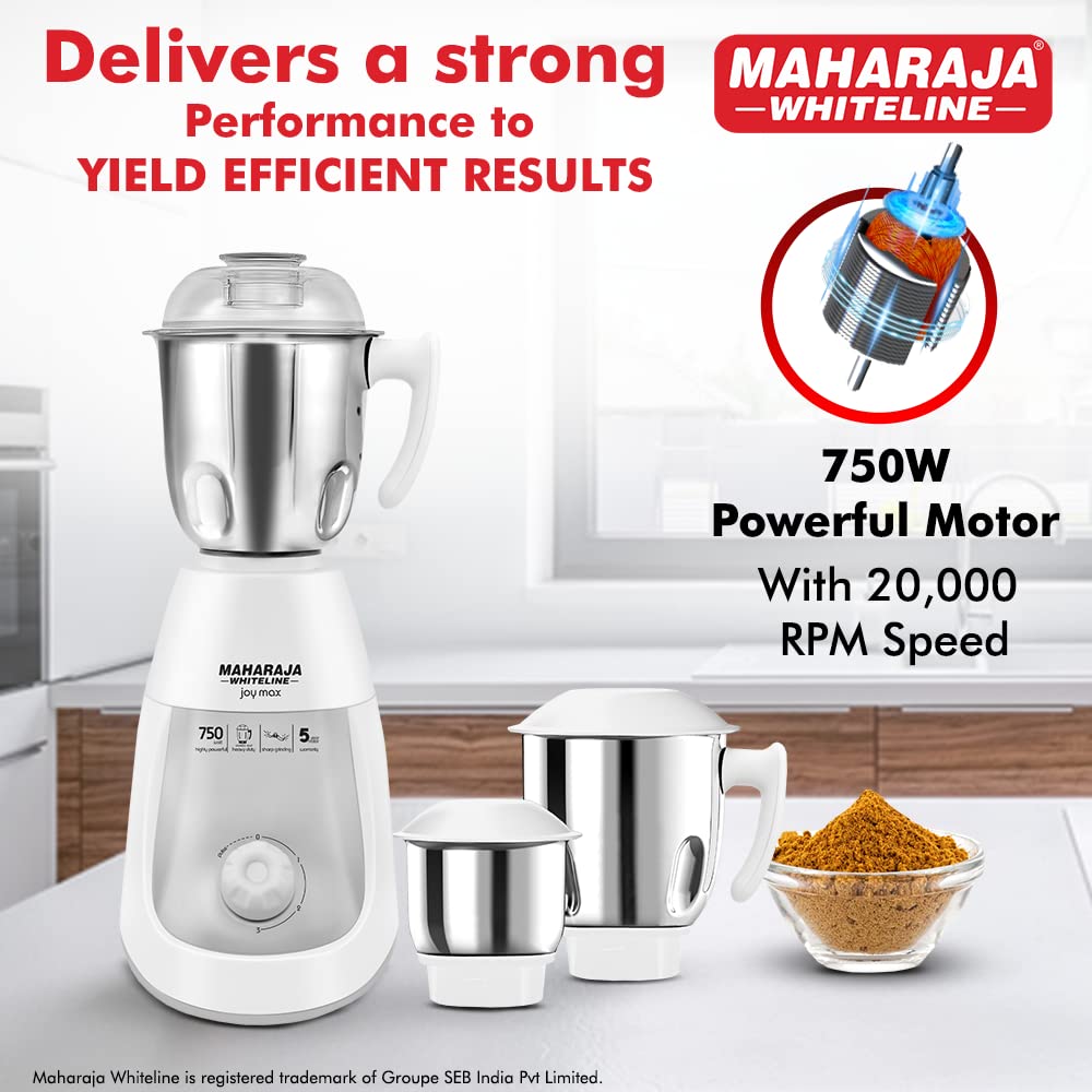 Maharaja Whiteline MX-148 750W Mixer Grinder with 3 Jars, Black, White