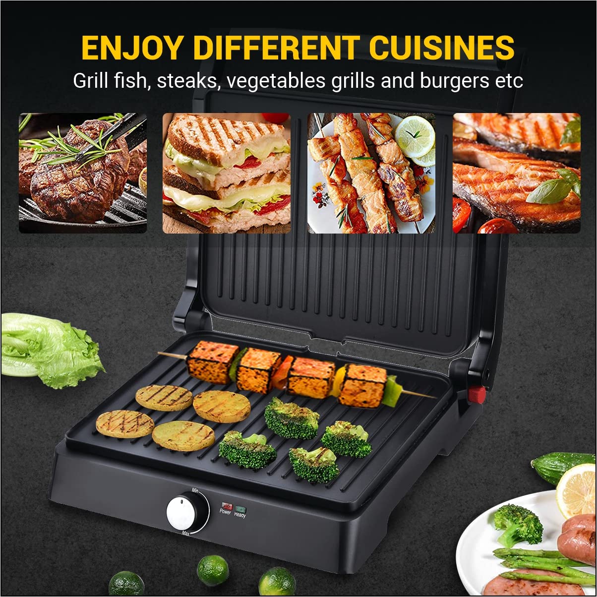 • ADJUSTABLE FOR EVERY OCCASION: Extra-large cooking surface with Adjustable Floating Plates to food stuffing that can open up to 180 degrees that meet all your family needs. Use it for making breakfast, evening snacks and hosting events or parties.