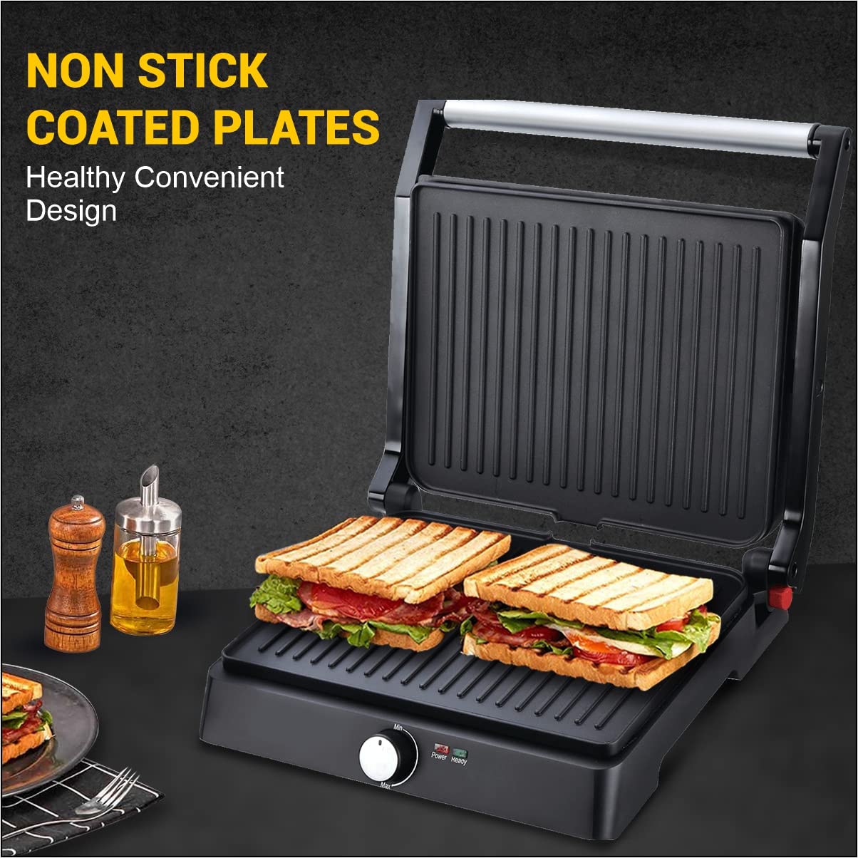 • USER FRIENDLY : It has a cool sliding touch handle for a better grip and Power & Ready to Cook Indicator Lights that indicates when the food is ready to serve