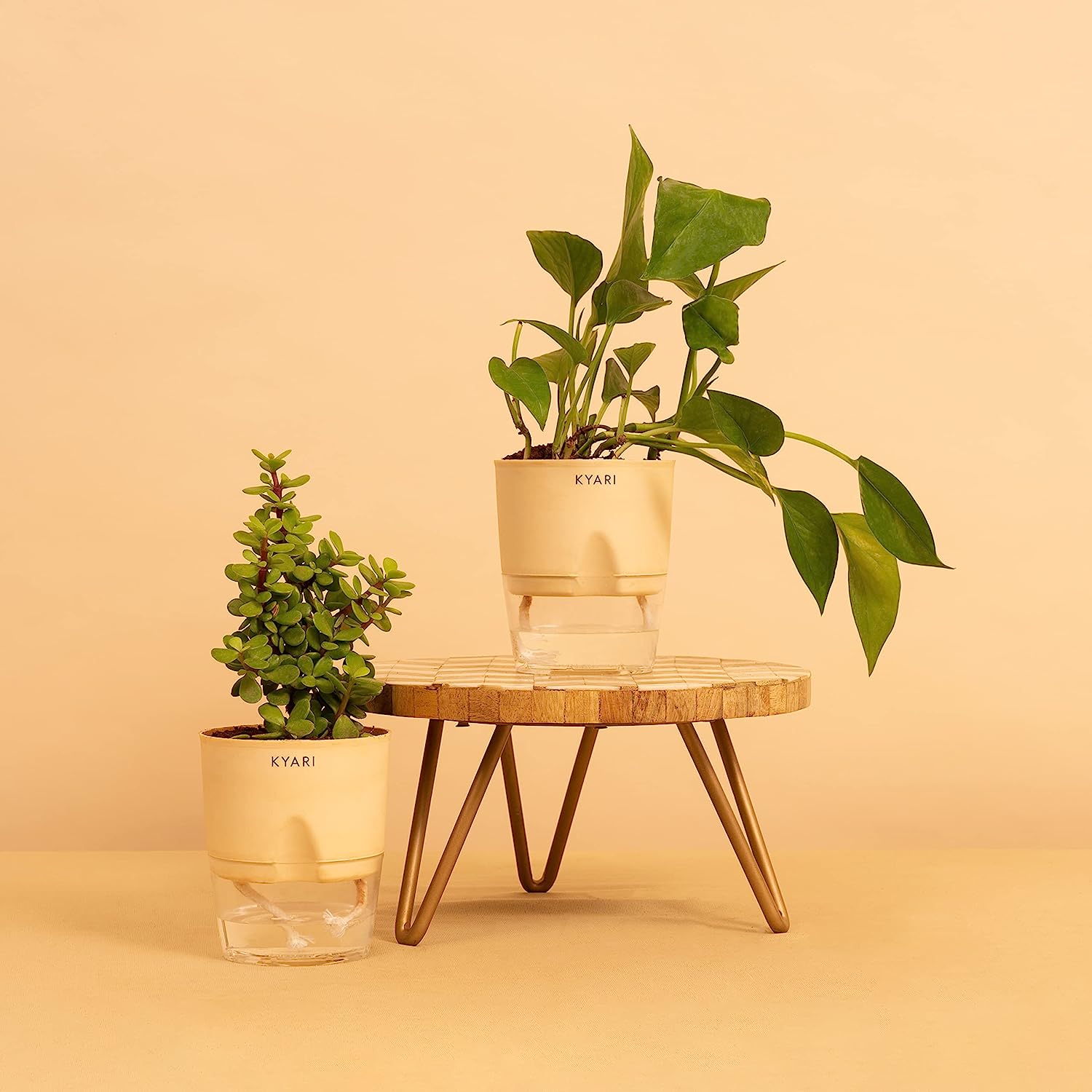 KYARI Combo of Money variegated, Good Luck Jade Live Indoor Plant with Cream Self-Watering Pot, Best for Living Room, Kitchen, Bedroom, & Office Table (Set of 2)