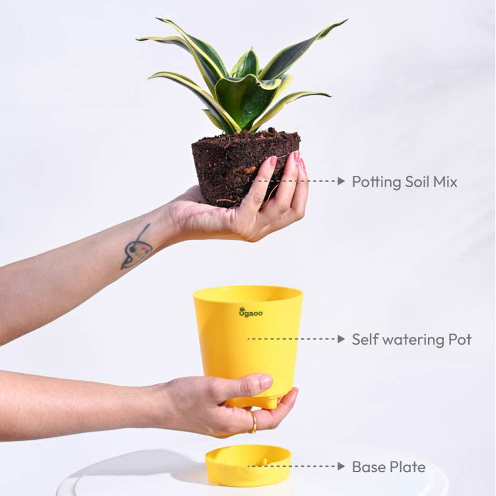 Ugaoo Sansevieria Golden Hahnii Snake Plant with Self Watering Pot