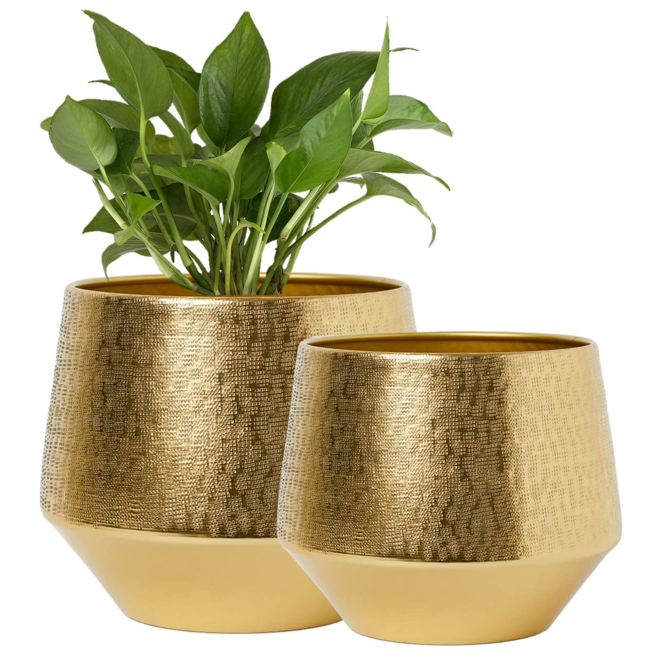 ecofynd 6 inches, Pack of 2 Eion Metal Plant Pot, Decorative Modern Indoor Planter Flower Pots, Home Garden Decor Planter for Living Room Bedroom Interior (Gold, POT022)