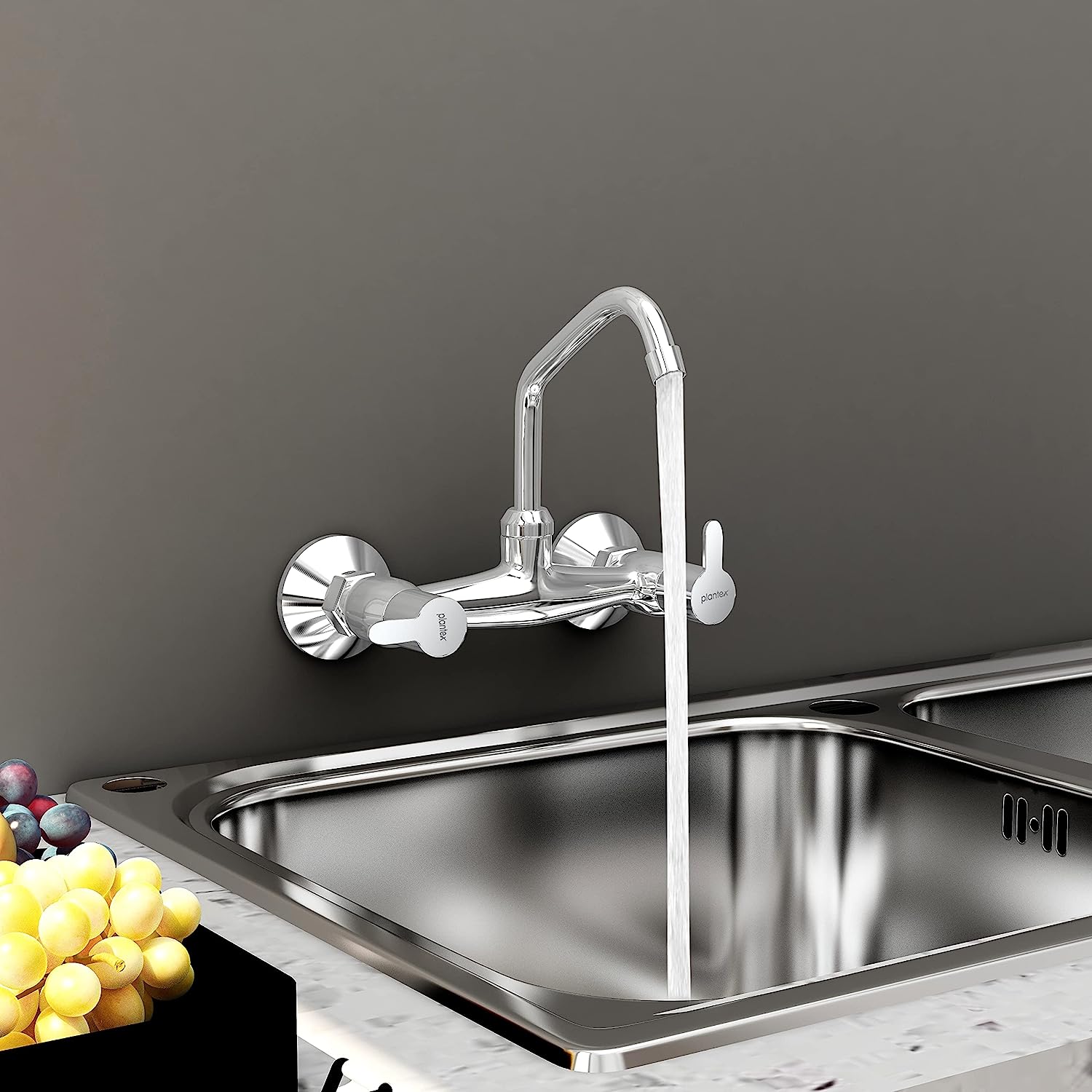 Plantex Pure Brass FLO-814 Kitchen Sink Mixer with (High Arch 360 Degree)/Basin Double Handle Hot & Cold Water Tap for Bathroom with Brass Wall Flange & Teflon Tape (Mirror-Chrome Finish)