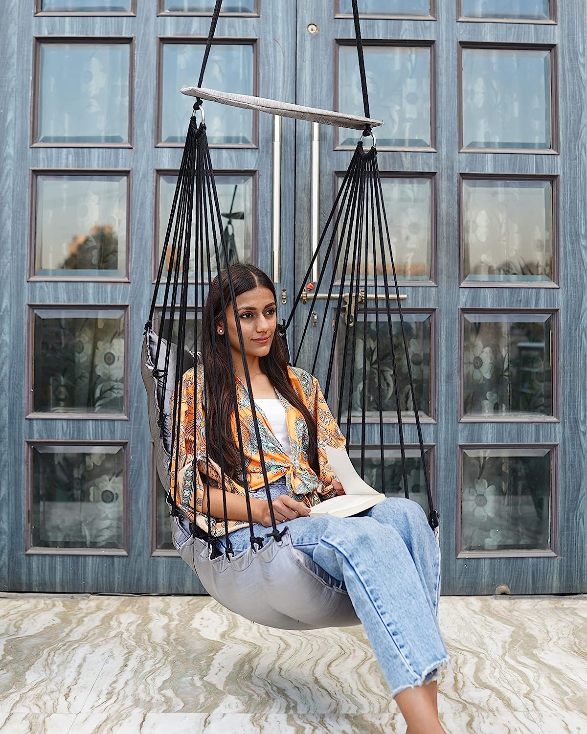 • INDOOR & OUTDOOR BALCONY JHULA: Great addition to your home, balcony, bedroom, kid’s room, living room, or office. Adds special charm to your patio, garden, yard, deck, and porch. This hammock swing is versatile enough to function as a hammock chair or a simple and elegant decoration in your home.