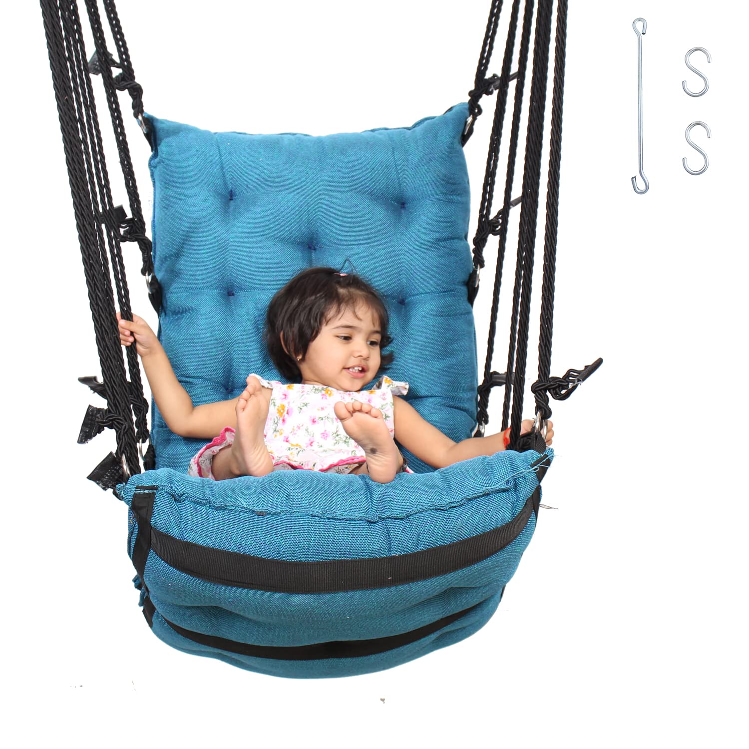 • SUPER EASY & QUICK INSTALLATION – Grande Swing Jhula Comes with All Accessories Required for Installation. Inside the Package you will Get 1 Triangle Rod, Swing Cushion with Rings & Free 2 S Hook,1 Rod. Insert S hook to Ceiling Hook & Attach this S Hook to Triangle Rod Provided in package. Triangle Rod Has Two Small S Hook, Hang these S hook to the Rings Given in Swing Cushion to Complete Installation. You Don’t Need to Purchase Any Additional Accessories. Contact us for Any installation Help,