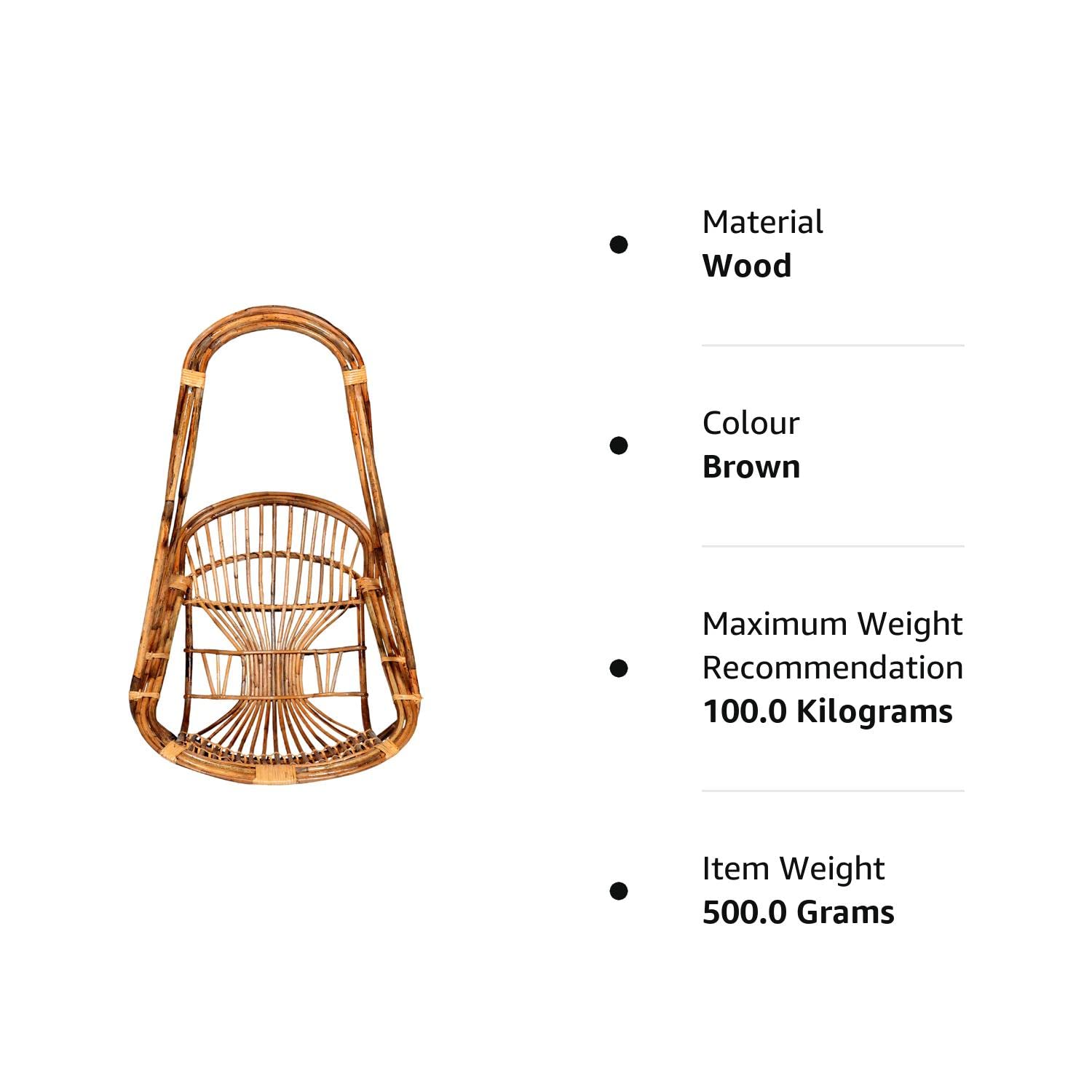 CANE CRAFTS Hammock Hanging Chair Garden Jhoola Wooden Bamboo Cane Jhula For Adults Outdoor Cane Swing Chair for Kids Wooden Uyyala Hammock Hanging Chair Wooden Swing Hanging Chair Jhula For Balcony, Home, Living Room and Garden with Cushion