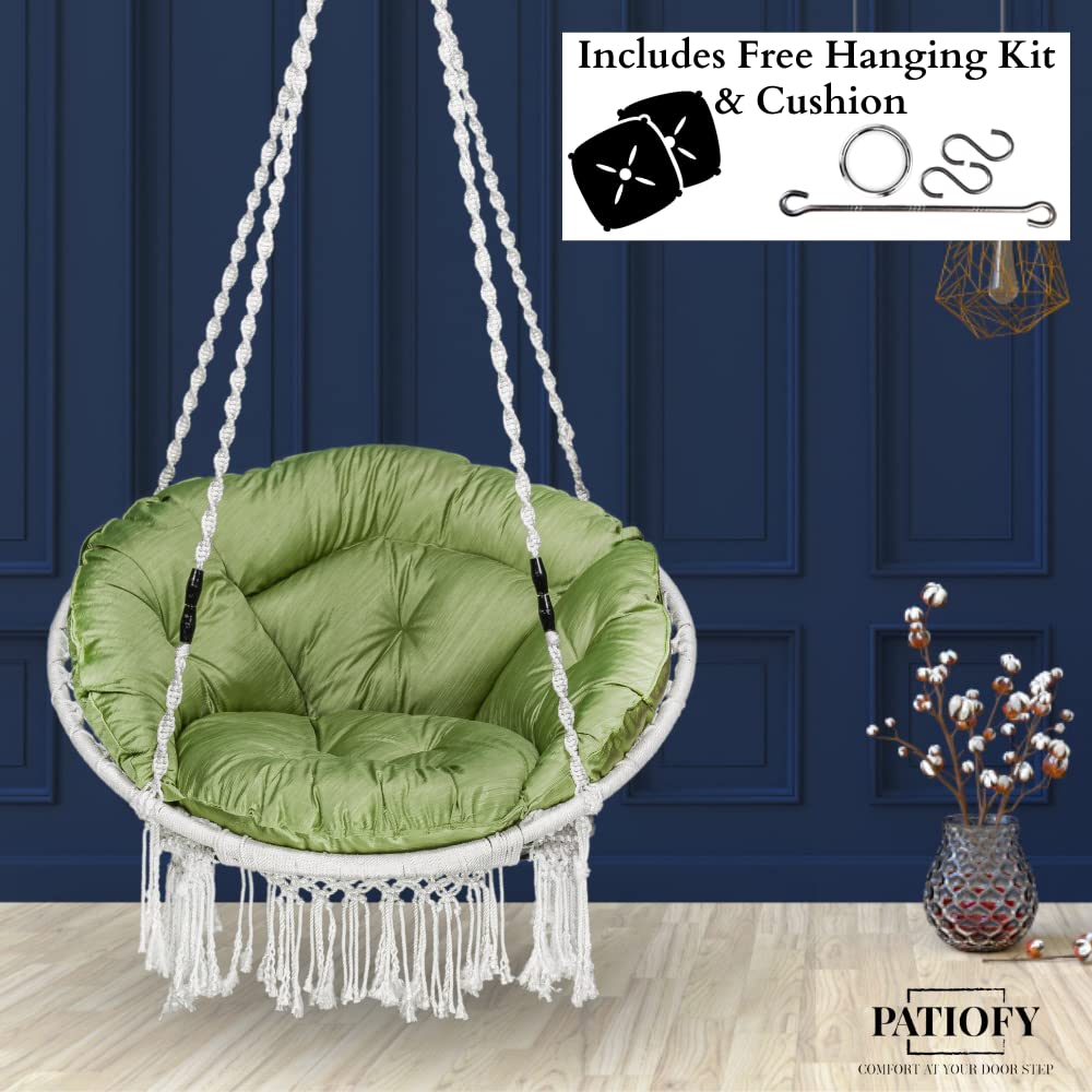 • PATIOFY Premium Swing Chair: This stylish swing chair with cushion is very cozy & durable. This swing chair is best for relaxing at home allows you to enjoy soft sponge comfort anytime & anywhere. This premium hanging jhula is the standard size & comfortable and it is big enough to have enough space to relax and stretch and enjoy full relaxation, something that other chairs can't do.