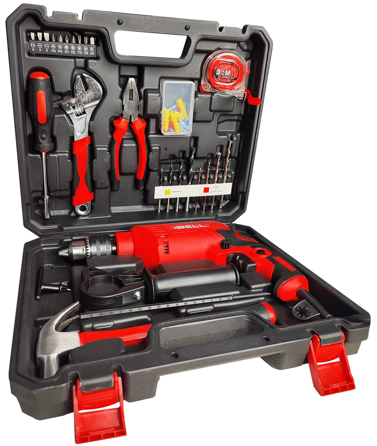IBELL Professional Tool Kit with Impact Drill TD13-85, 650W, Copper Armature, Chuck 13mm Keyless Auto, 59 Home Essential Tools/Accessories
