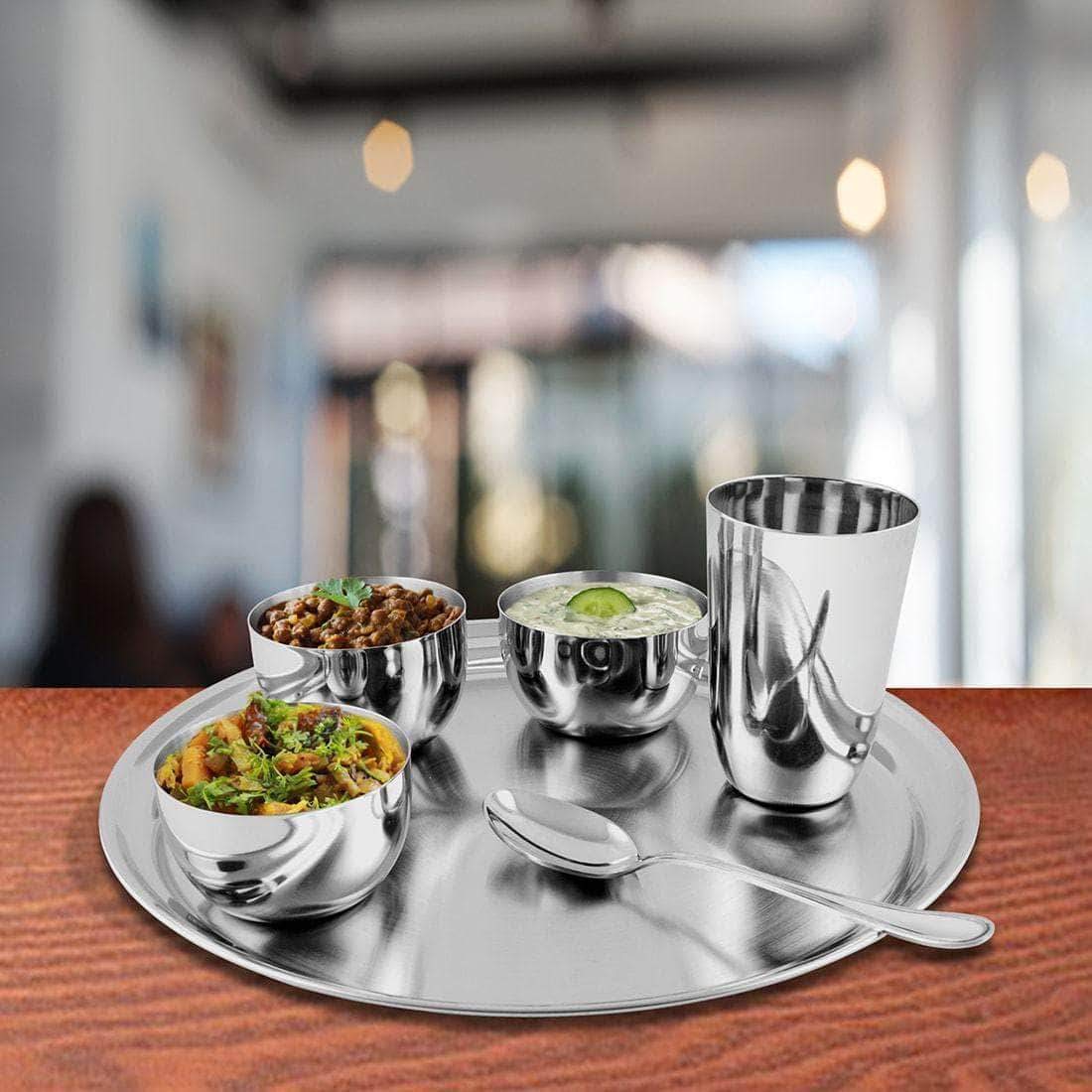 Stainless Steel Dinner Thali Set - 6 Pieces, Silver