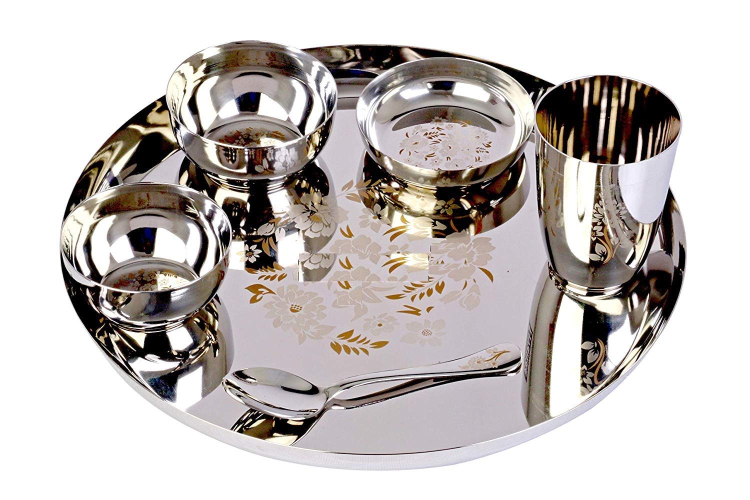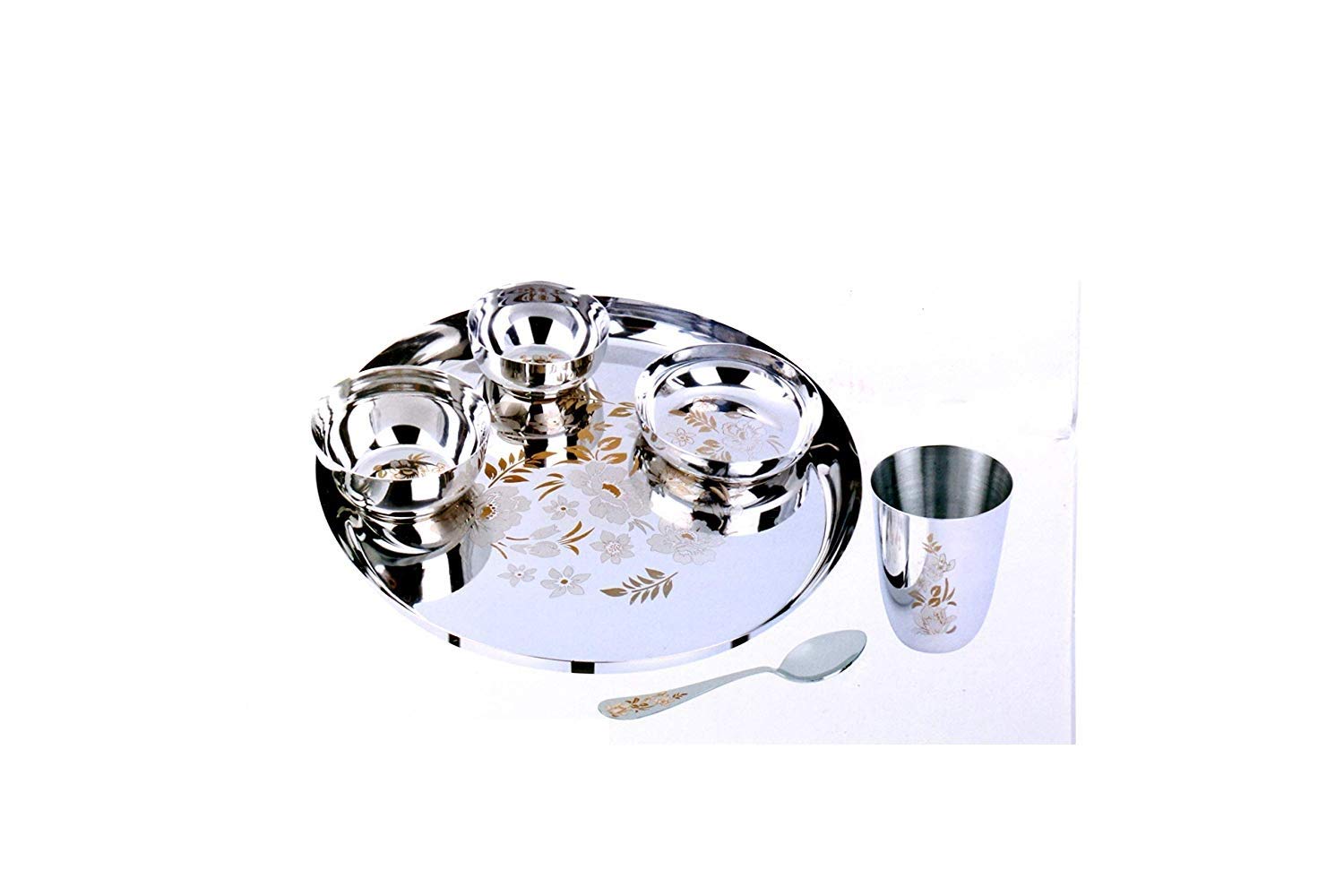 Copper High Grade Stainless Steel Thali Set Majestic for 1 People(6 Pcs) (Mirror Finish)