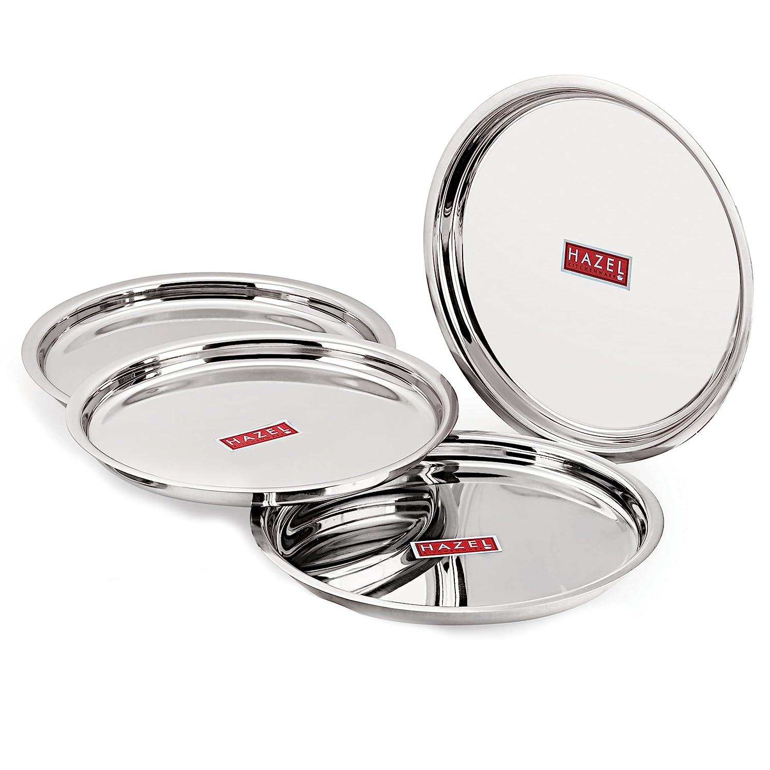 Stainless Steel Plates Set | Premium Mirror Finish Thali Set Stainless Steel | Heavy Gauge Steel Plates Set for Dinner & Lunch Set of 4, 25 cm