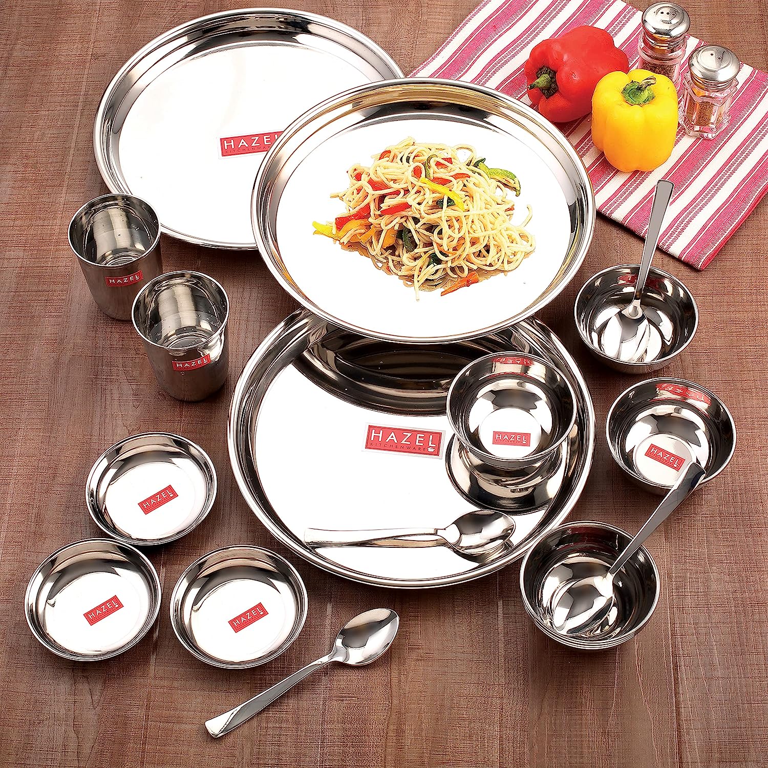 • Food served on this elegant dinner set improves the dinner table setting. Combine steel plate with serving bowls & small plate to create ideal setting for any home.
