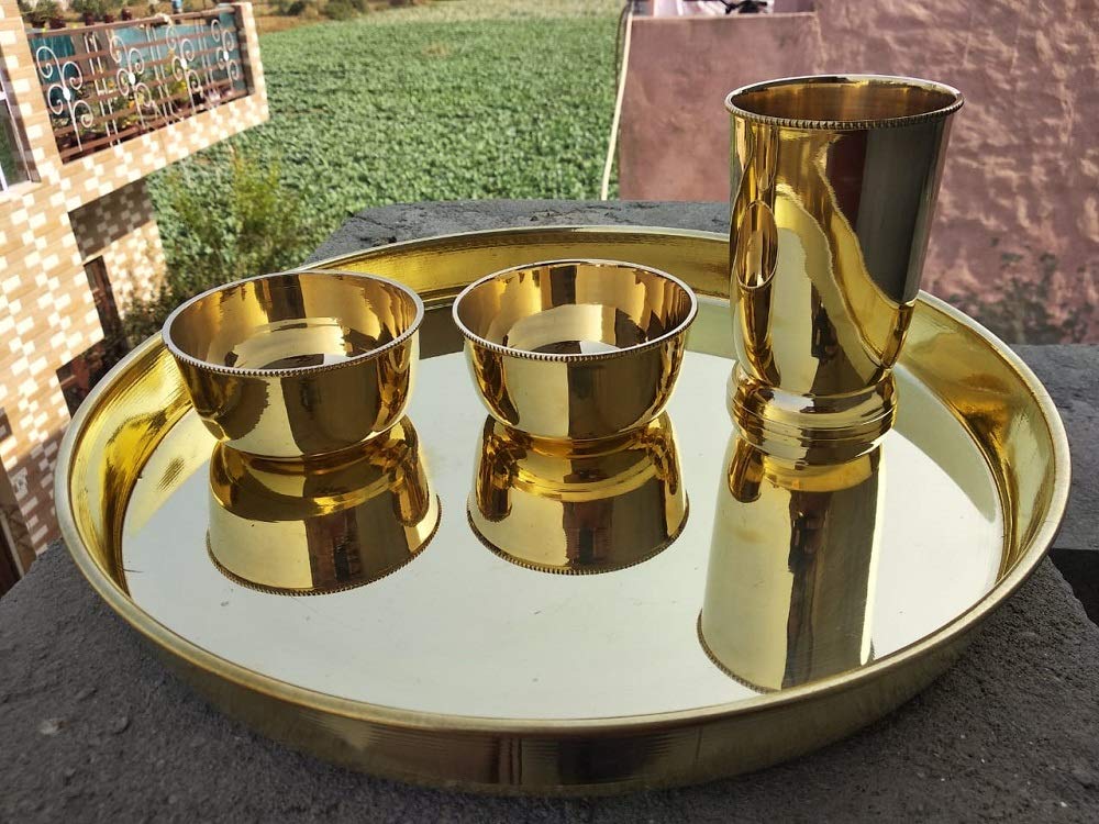 Brass Thali Dinner Set, Plain Design (4 Pieces of Set) 12". Best for Home, Office, Kitchen Weddings, Parties, Gift & Festival.