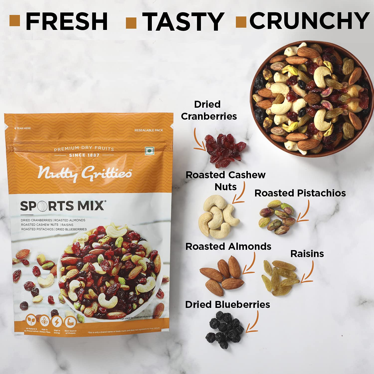 - INGREDIENTS: Roasted Almonds (20%), Roasted Cashews Nuts (20%), Roasted Pistachios (10%), Dried Blueberries (10%), Dried Cranberries (25%) and Raisins (15%) ; NET WEIGHT : 200 Grams ; Best before 12 months from date of manufacture.