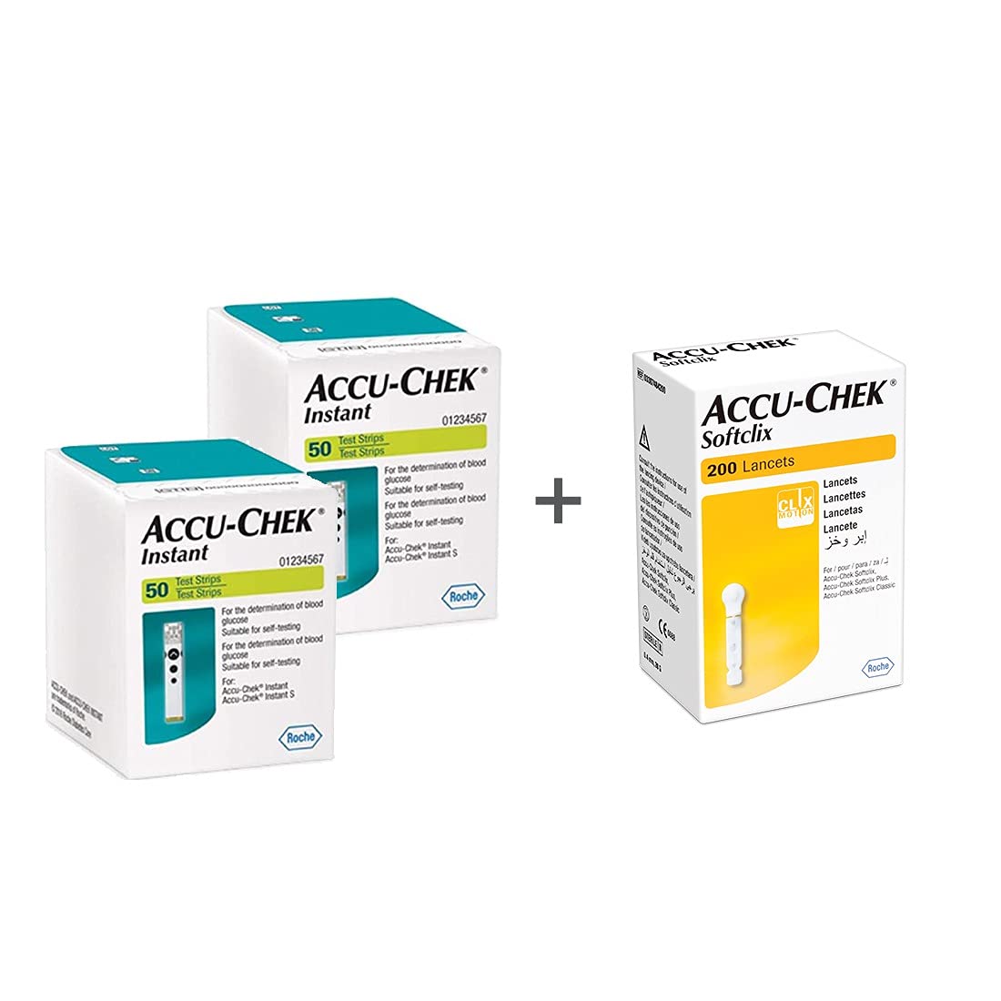 Accu-Chek Instant 2 Packs of 50 Test Strips with 1 Pack of Softclix Lancet 200