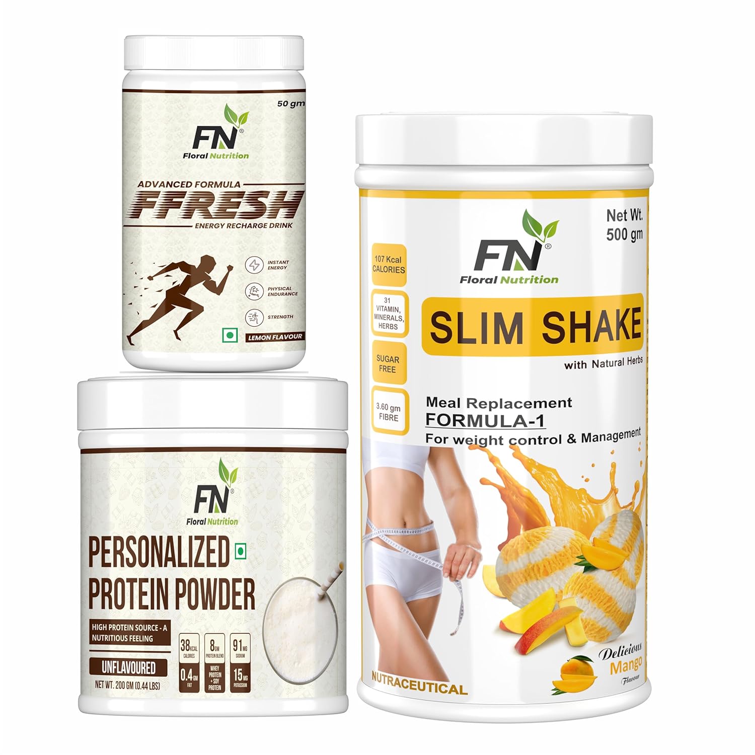 Nutrition Weight Management Slim Shake Combo Formula-1, FFresh Energy drink Lemon & 200gm Personalized Protein Powder-Protein Shake (750 g, Mango, Lemon, Unflavoured)