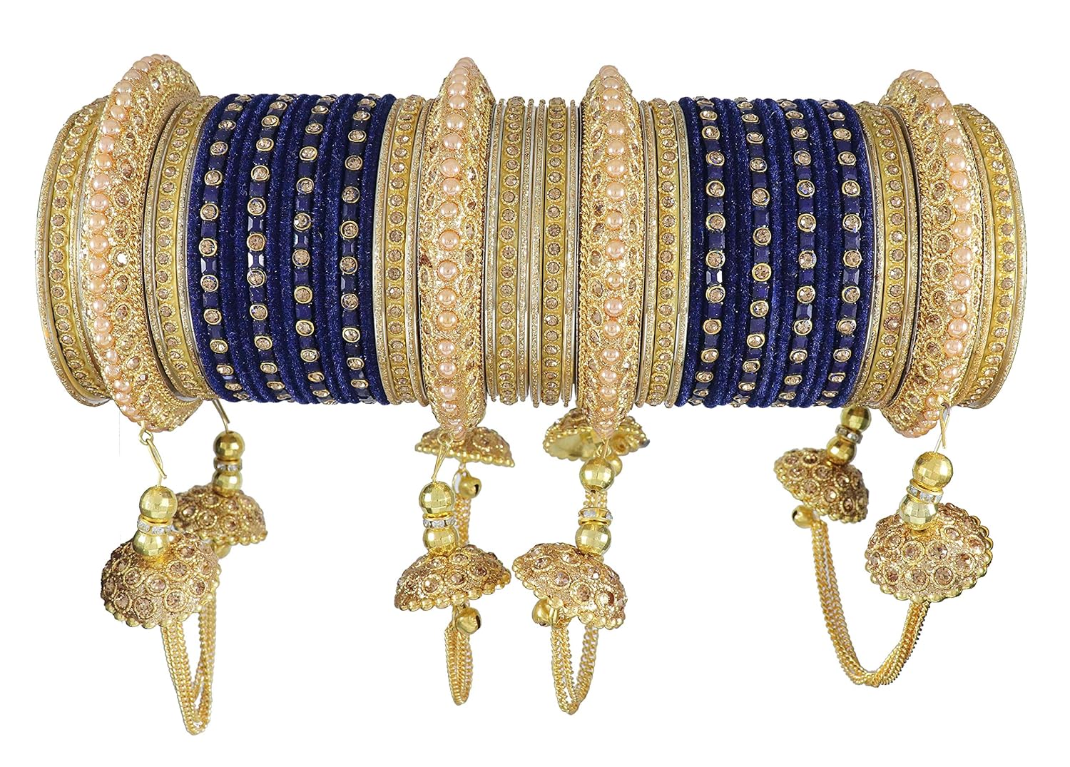 - Finish Type:- Glossy ; Design Detail:- The design of this Chuda set can make your look beautiful and attractive, As the material of this Chuda set is made by very good quality material (like: Metal with Zircon Gemstone) and experienced labor as we cannot compromise our clients with the quality of our products. ; Pack Of Details:- A Pair of 52 Bangle Set