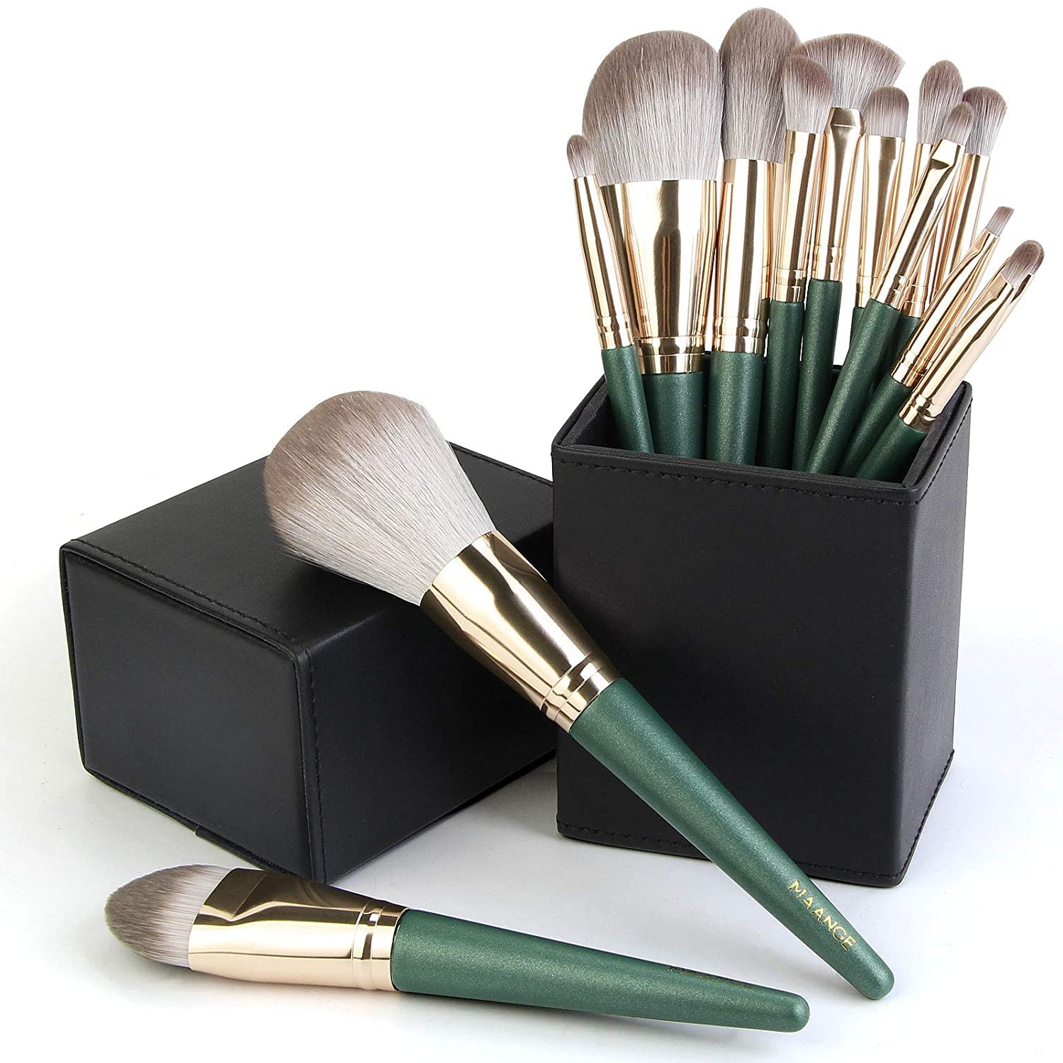 | Colour | Professional Makeup Brushes 14 Pcs with Holder, Foundation Eyeshadow Blush Concealer Powder Makeup Brush with Case Set (Green)Professional Makeup Brushes 14 Pcs with Holder, Foundation Eyeshadow Blush Concealer Powder Makeup Brush |