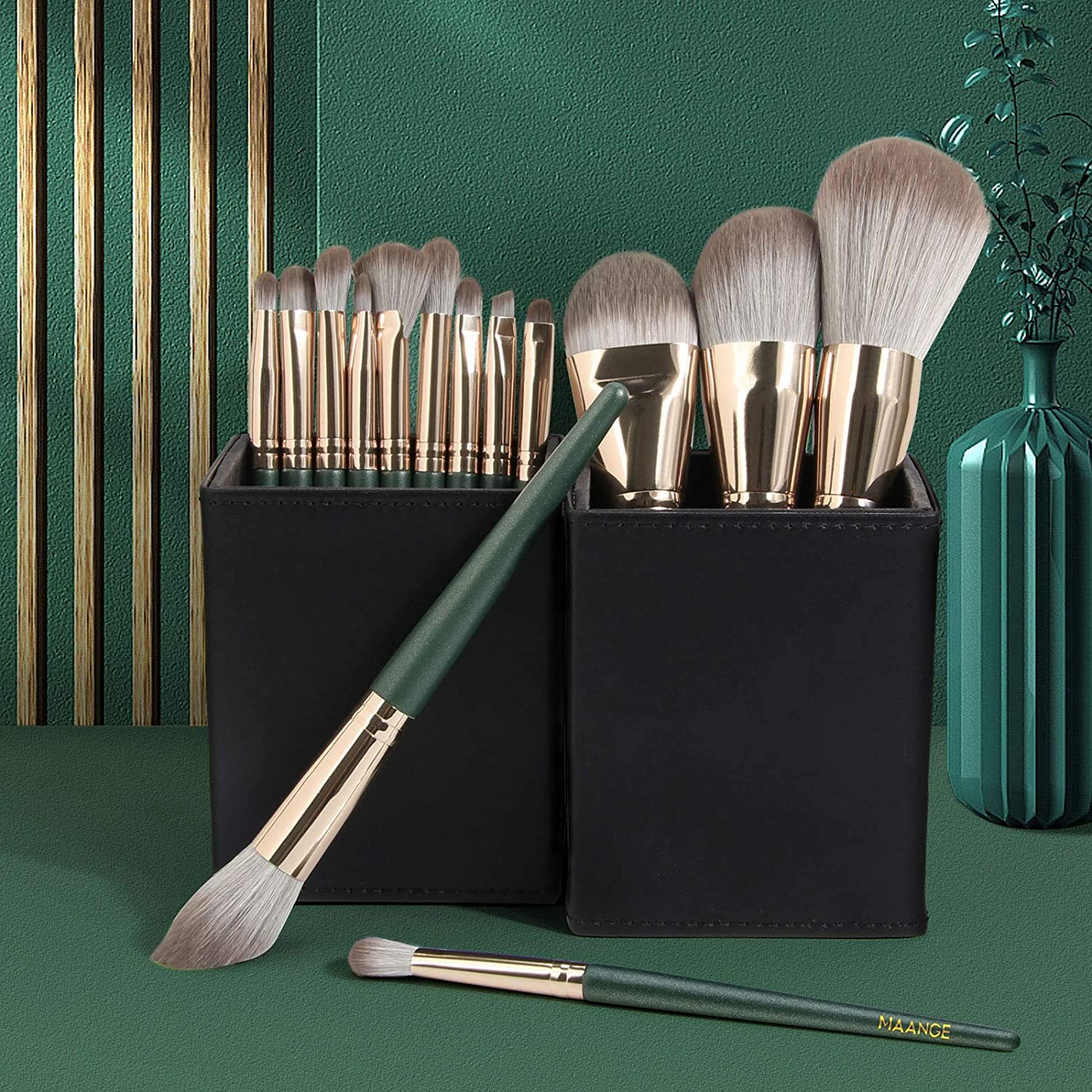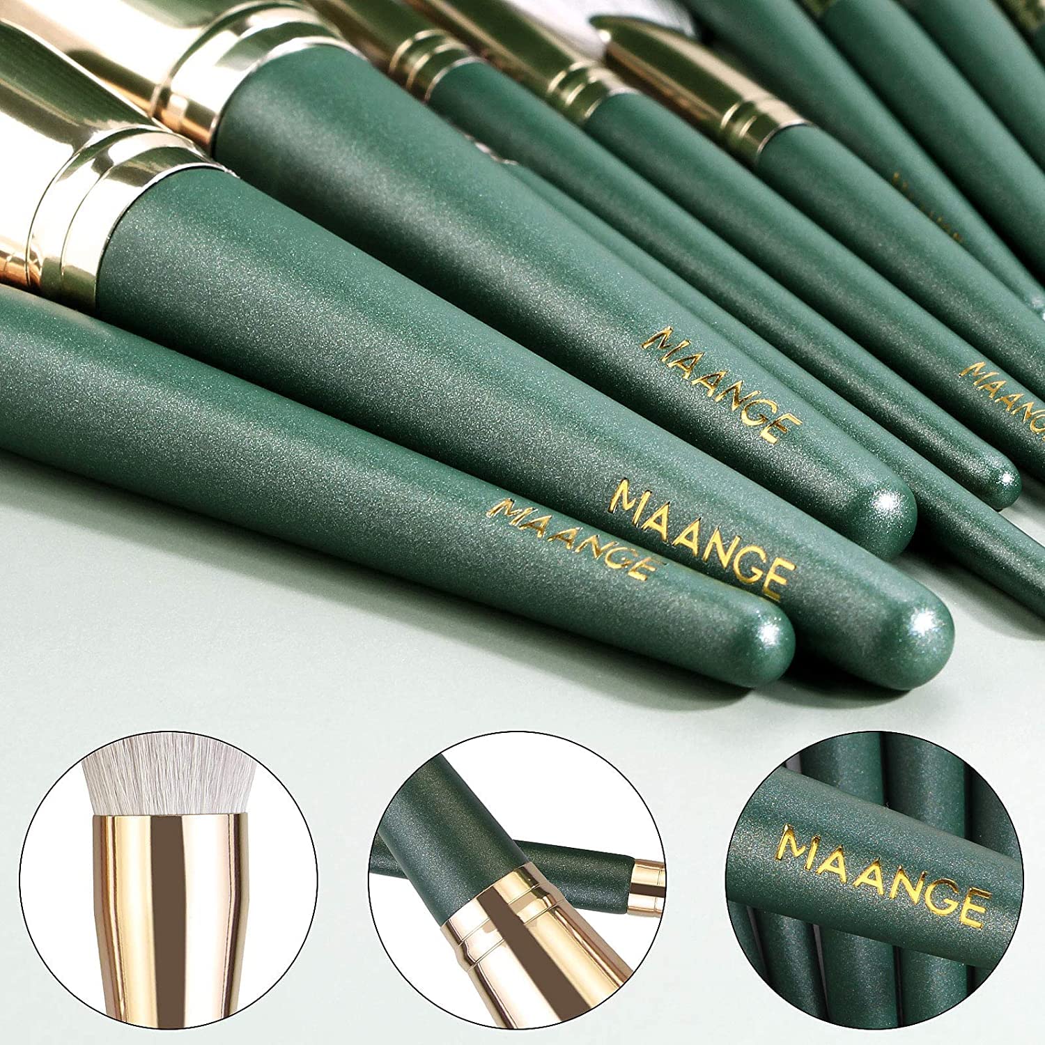 - HIGH STANDARD HANDLE: Made of high-grade wooden materials, strong and light, and feels comfortable. Each interface uses the most sophisticated connection technology. Long-term use is still durable. The cool green color makes the makeup brush set look high-end and stylish.