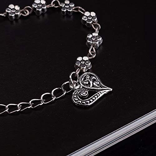Shining Diva Fashion Oxidised Silver Floral Single Stylish Anklet for Women & Girls(Silver)(9575b)