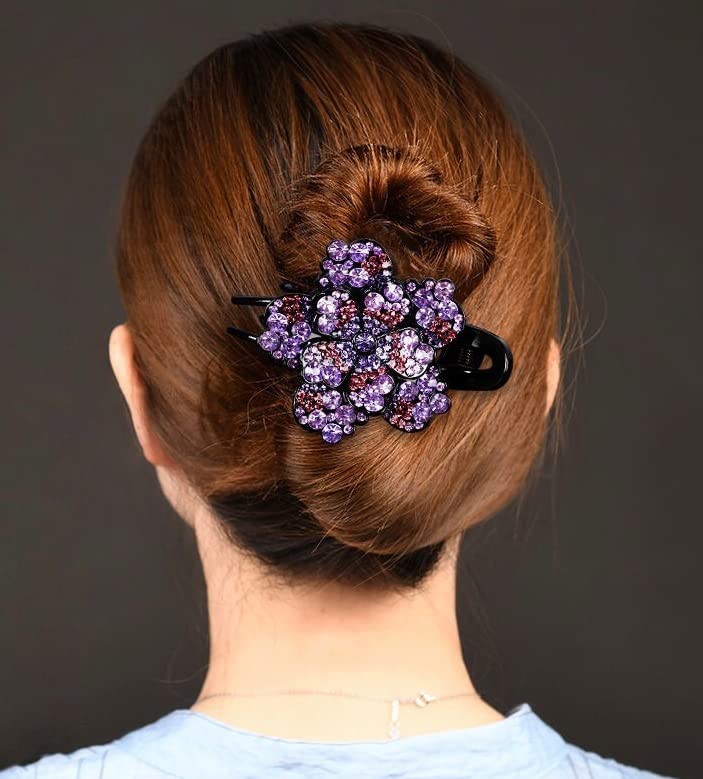 - Rhinestone and faux crystal hair barrettes. Floral Hair Jaw Clip Claw Clip for Women Long Thick Hair Non- Slip Ponytail Holder Strong Hold Hair Grip Catch Barrette Accessories.