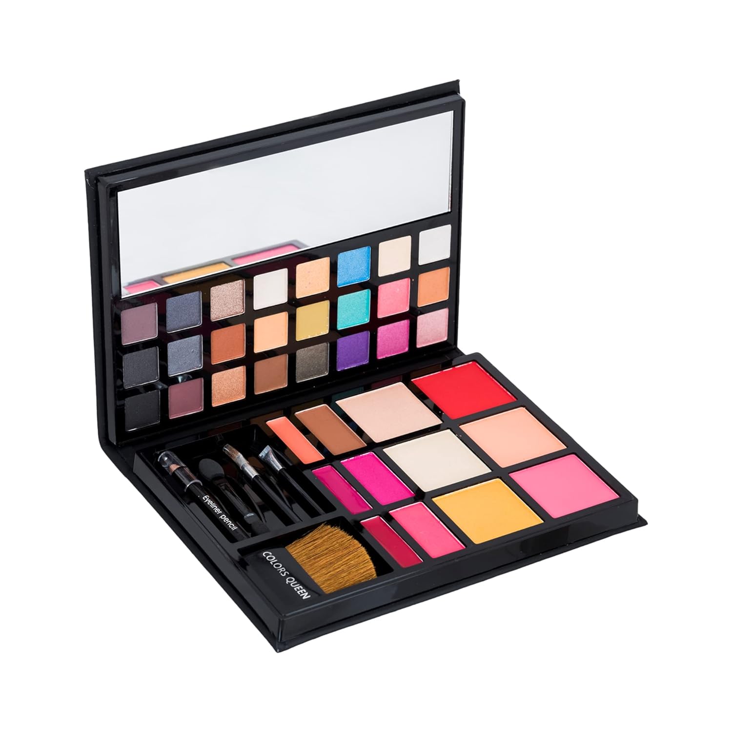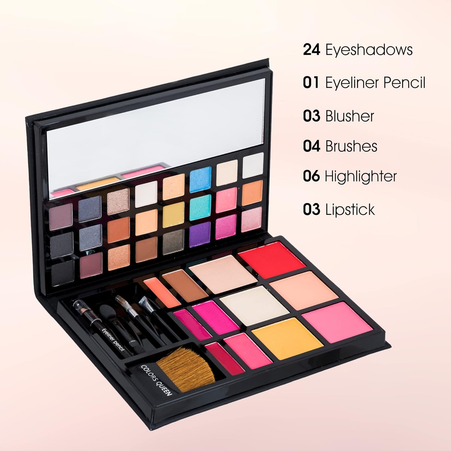 Professional Face Flawless Makeup Palette | 24 Colors Eyeshadow Palette, 3 Blusher, 3 Lipstick, 1 Eyeliner Pencil and 6 Bronze Highlighter with 4 Brush Set and Leather Case