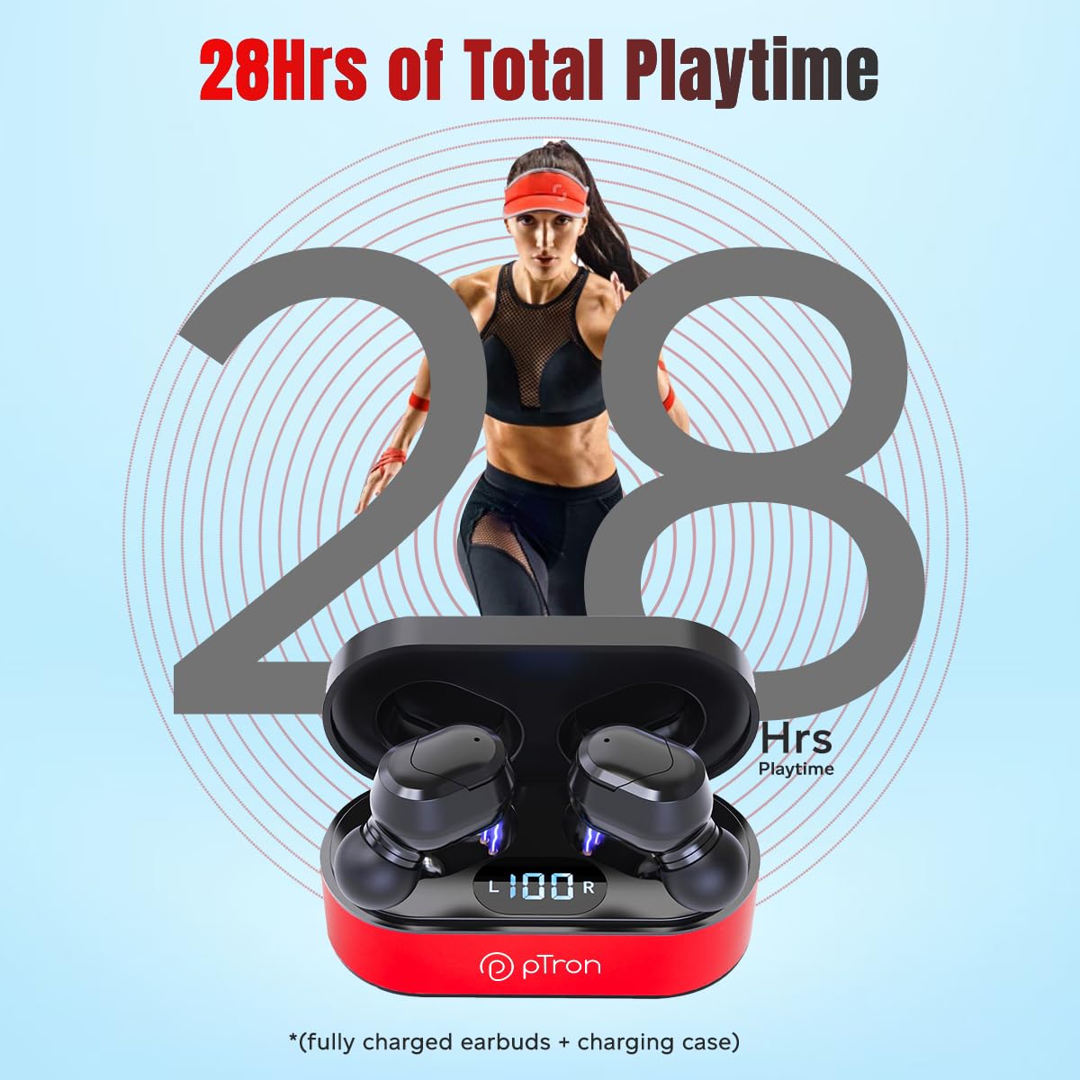 - Bluetooth 5.0 with Quick Pairing, 10m Stable Wireless Range, Auto-ReConnect & Wide compatibility with Smartphones/tablets | 28 Hours of combined playback time with the digital display charging case