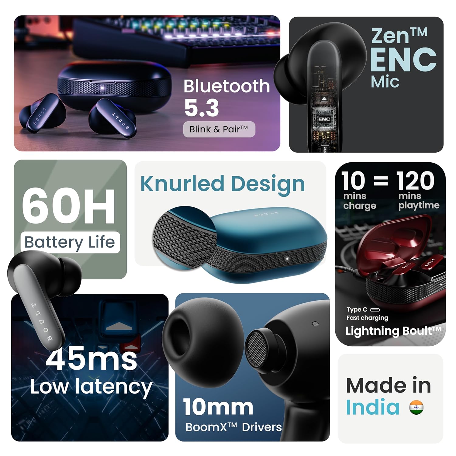 - 【45ms Combat Low Latency Gaming Mode】With Low Latency Gaming Mode on the Boult Z20 Pro bluetooth earbuds, your audio syncs perfectly with the on-screen action. Whether you're engaged in intense battles or exploring vast virtual worlds, you'll hear every detail as it happens, for a competitive edge that can make all the difference.