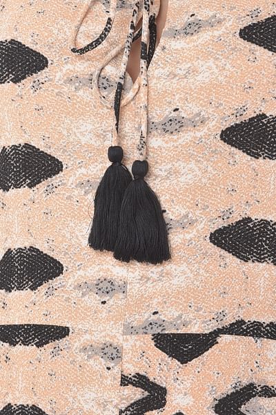 Nude coloured resort wear long maxi crafted with soft crepe fabric.