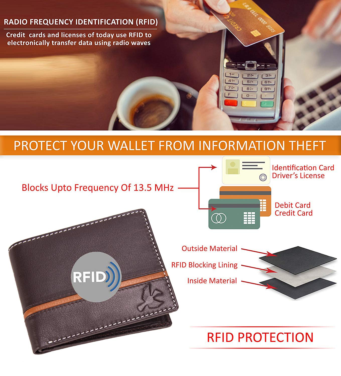 • RFID BLOCKING SECURITY : Our Wallets Are Equipped With Advanced RFID Secure Technology, A Unique Metal Composite, Engineered Specifically to Block 13.5 Mhz Or Higher Rfid Signals And Protect The Valuable Information Stored On RFID Chips From Unauthorized Scans In Your Wallet.