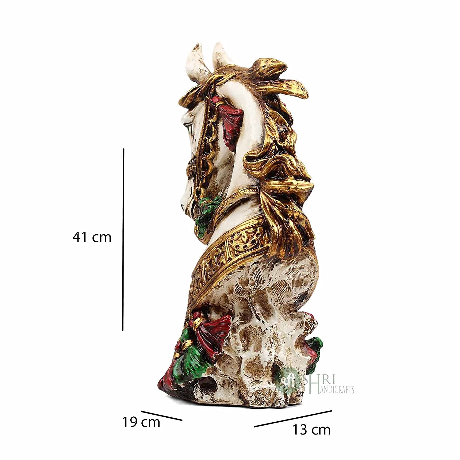 INDICAST 15" Handmade Decorated Horse Bust Statue Animal Figurines Gifts Antique Design for Home Decoration, Living Room Bedroom(White)