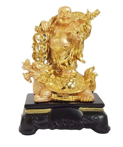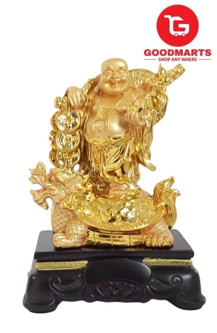 GOODMARTS Exclusive Polyresin Medium Size Happy Man with Turtle On Wooden Base for Money, Wealth & Good Luck, Decorative Idol Statue Showpiece for Home.