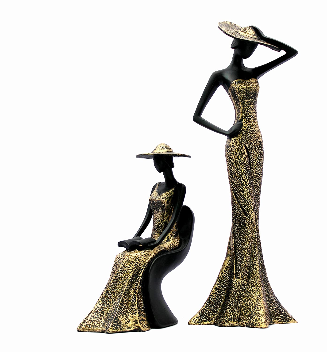 eSplanade Hat Cap Lady Showpiece Statue Sculpture Figurine | Set of 2 | Home Decor Valentine Day Gift | Resin - 18.5" Inches - Black-Golden