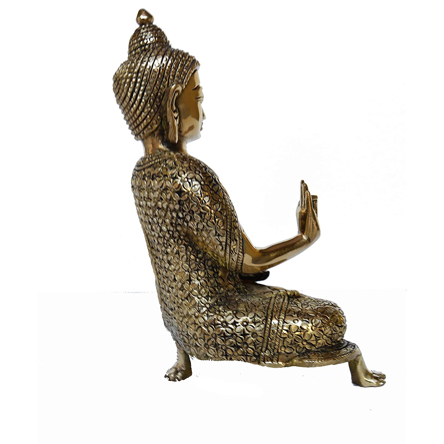 MetalDecor Glossy Antique Finished 9 inch Meditating Brass Buddha Figurine Showpiece for Home Temple or Decoration