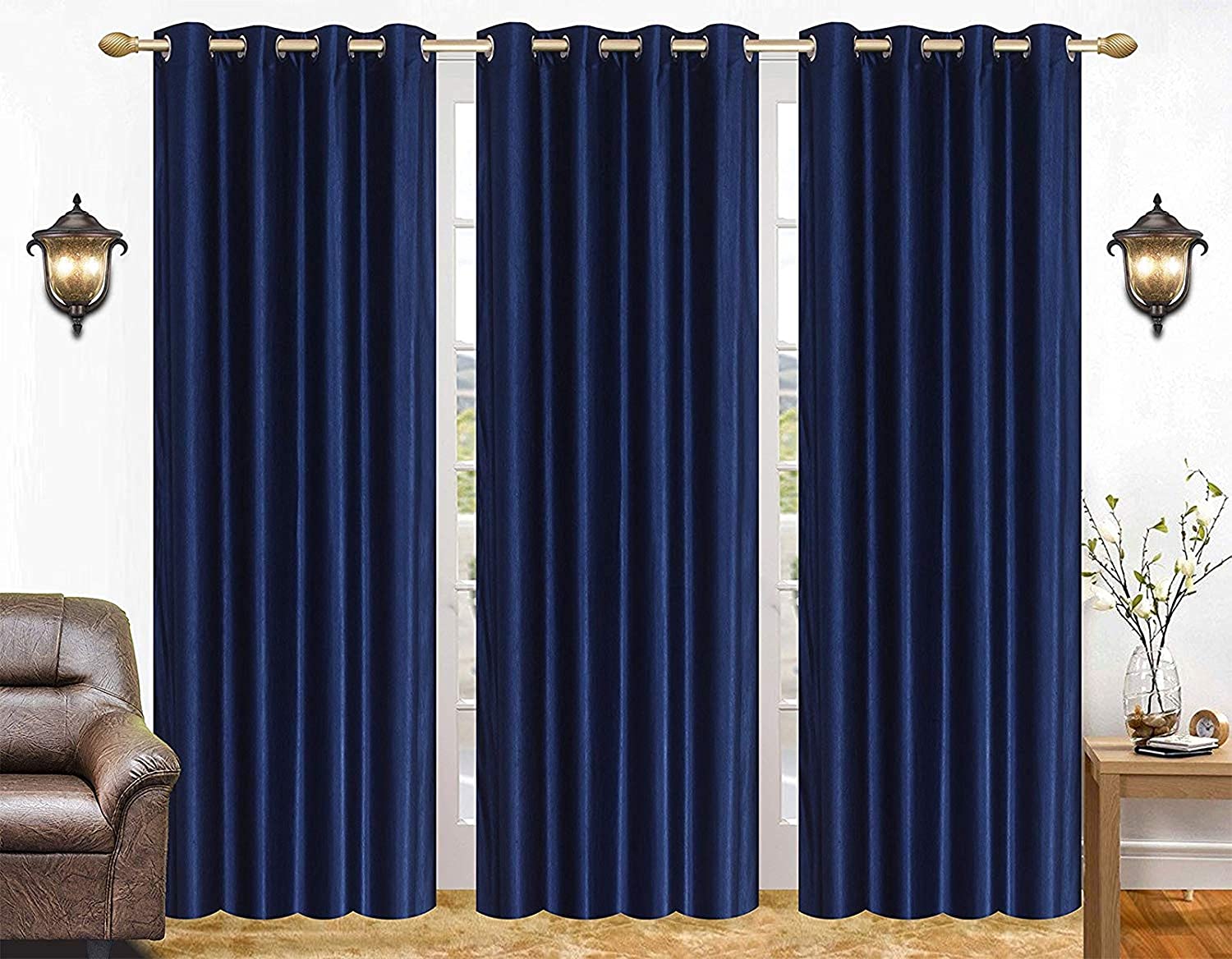 - These Luxurious Curtain made of Fine and Superior high quality Polyester Fabric and Material with Expert Workmanship. Package Contents :- 3 Curtains. 8 Steel ring grommets on 48 inch wide curtain panel installed already for hanging up.