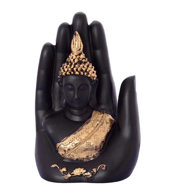 Product Description - Everyone wants perfect peace of mind that's free from ignorance, greed, hatred, and other afflictive states. Buddha has always been a great symbol of peace. So, what could be a better gift or a better option to bring home than the idol of Buddha? Adorning your home place with God's idols and figurines has been there for ages now and still would forever continue to be. Everyone wishes to hold God's idols in their home as it is said to bring positive energy and good vibes. And you can bring the same spirituality to your home with Faverdeal Black & Golden handcrafted palm Buddha decorative statue that comes in black and golden color. This showpiece is handcrafted intricately by our skilled artisans at the dwelling of Faverdeal using various inherited methods and is also a great gifting option for your family and friends.
