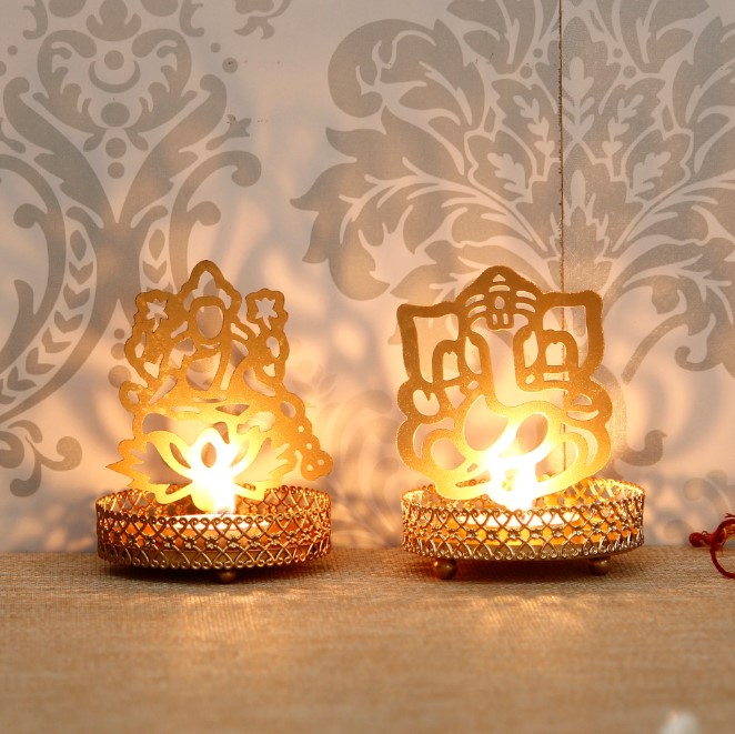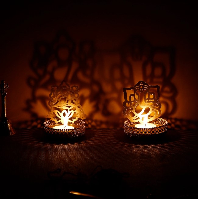 Package Content - One Lord Ganesha and Laxmi Shadow Tea Light Holder