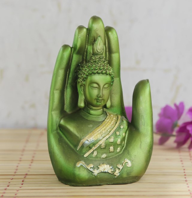 Package Content - One Decorative Palm Buddha Figurine Showpiece