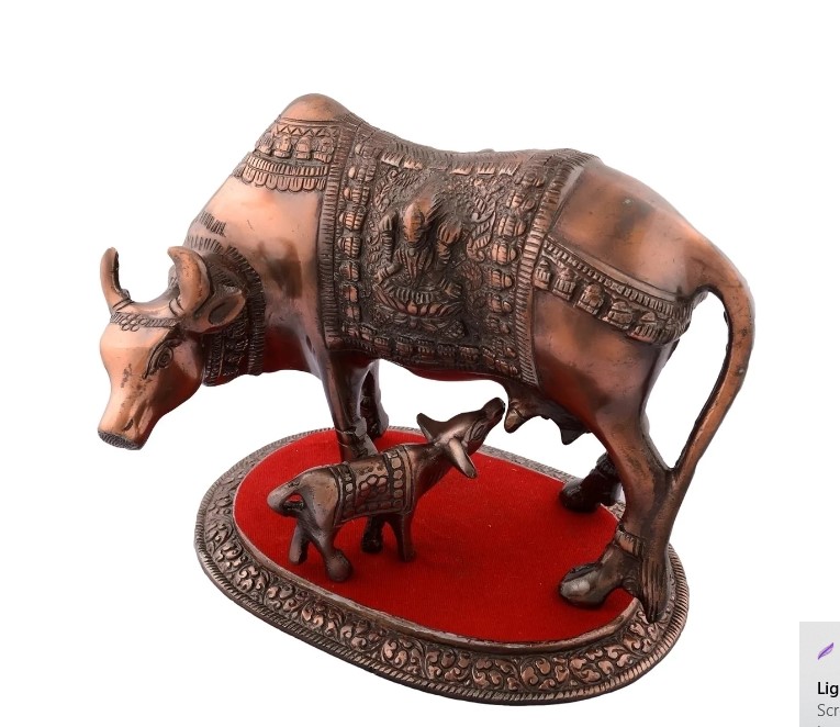 Product Description - Beautiful creation of kamdhenu cow & calf is a perfect symbol of the undying aura of the holy saint that encompasses numerous devotees round the globe. This statue aptly conveys the emotions of people who consider cow (gomatha) as a motherly figure. Kamdhenu cow & calf statues are widely used for decoration purposes in homes and offices. It serves as a great gift, especially around religious celebrations and festivities. This white metal handicraft has been made by skilled artisans from the house of using various traditional techniques.