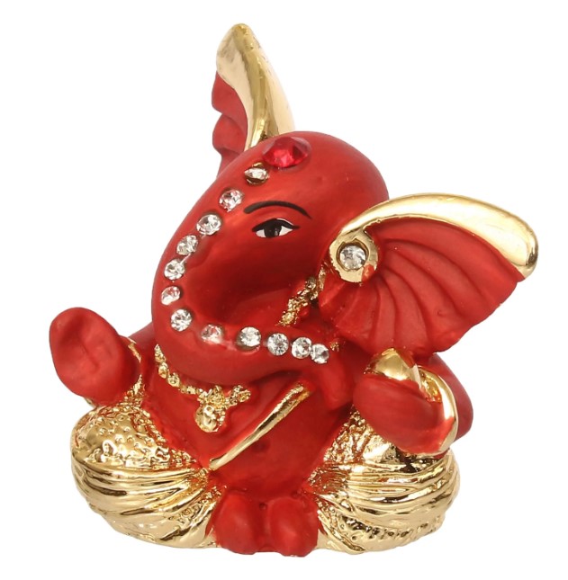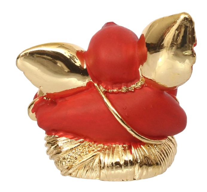 Package Content - One Gold Plated Red Mini Kaan Ganesha Decorative Showpiece for Home/Temple/Office/Car Dashboard