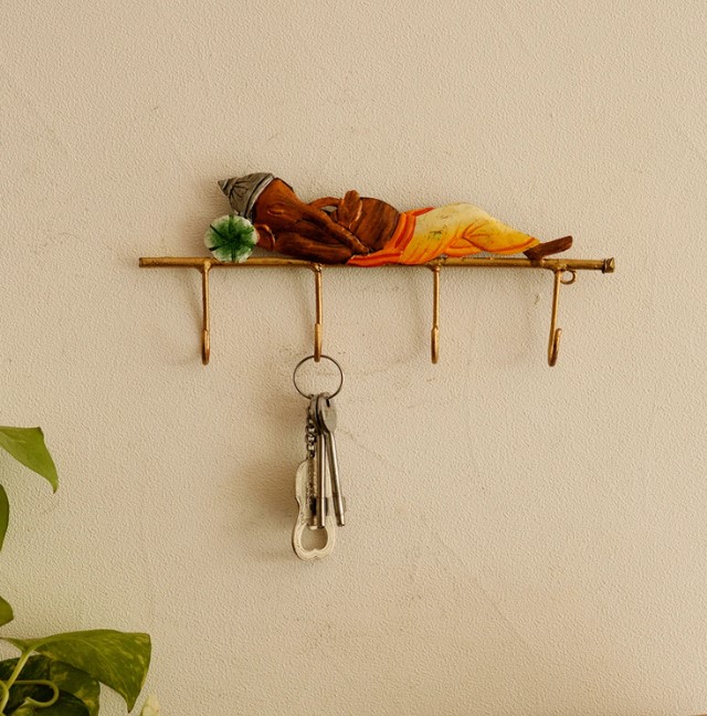 Product Description - Key holder always held a very important part in everyone's home and are also available in various forms. Our "Lord Ganesha Resting on Wrought Iron Key Holder" that comes in yellow, green and brown color is the best for you if you have a traditional home décor. The key knobs have been carefully designed to hold your keys. These key holders stand as a great gifting option for your family and friends for various events. You can find many such key holders in different types on our online portal. These key holders are handcrafted using various inherited techniques by the artisans at the house .