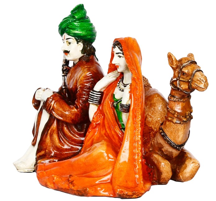 Product Description - With this stunning display of Rajasthani men & lady couple sitting together statue combo, you may add a creative and regal touch to your home decor. This statue is a handicrafted decorative showpiece that exudes style and elegance. This display demonstrates how a straightforward artwork may develop into a marvel of craftsmanship. The skilled artisans of , who are on a mission to bring Indian art and culture into every home in India, meticulously handicrafted this human figurine. Giving this to your friends and family will make them think of you every time they look at the finely detailed human miniature. On our online store, you can find numerous idols and figurines in various shapes and colors to match your home or office interior.