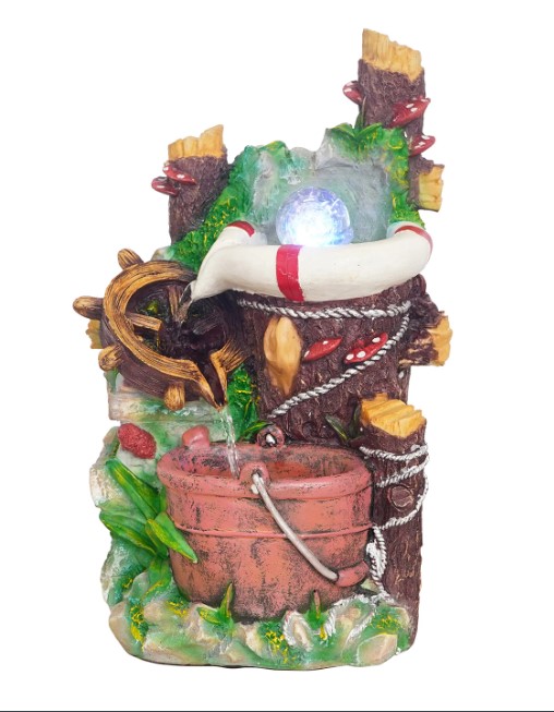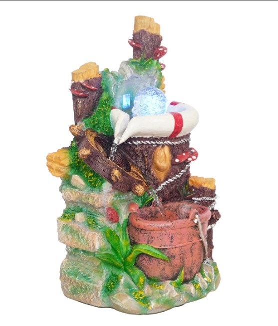 Package Content - One 2 Steps Attractive Multicolor Well & Bucket Design Water Fountain with Multicolor LED Light & Rotating Crystal Ball