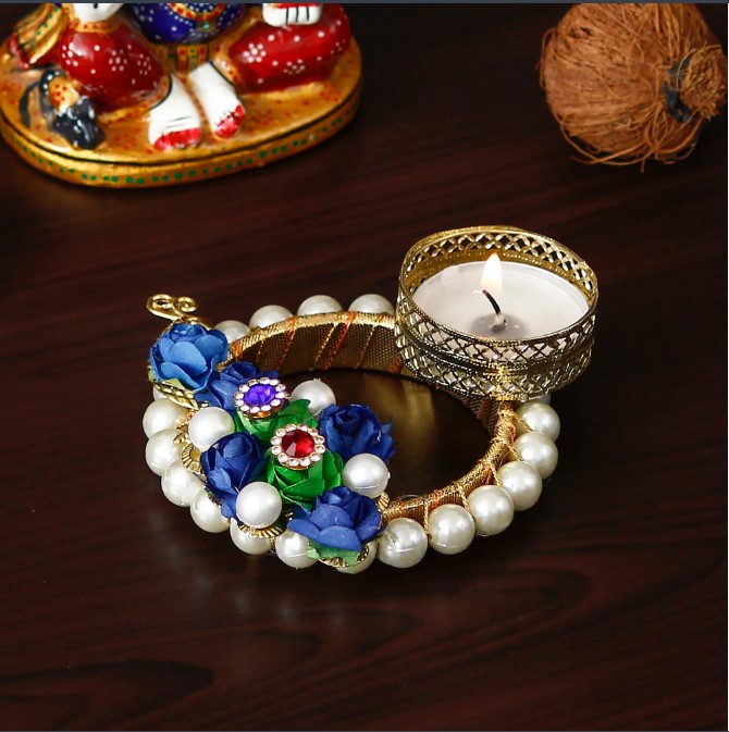 Product Description - Decorative tea light holders are in trend especially the one's that have unique designs stand as a great decor item during the festivals. They also help you decorate your home as well as the office space and enhances your festive decoration.Designer Handcrafted Floral Tea Light Holder is the best for you to get your hands on. You can also gift this to your friends and family on festivals or other auspicious occasions. Diligently handcrafted using various ancient techniques by the artisans at , this is the most unique and decorative tea light holder that you can get.
