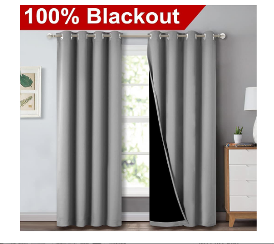 • Blackout Effect: The real blackout curtains on the market. Sew in black liner backing makes the drapes thick enough to completely keep out the sunlight and uv ray. The benefit is to offer you a real dark environment, bringing you a good night's sleep during the day