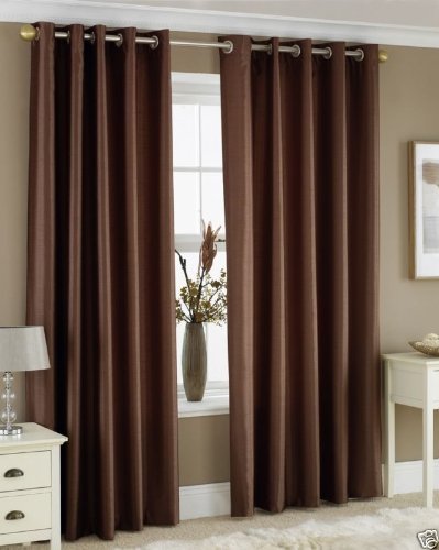 2 Piece Eyelet Polyester Long Door Curtain Set - 9ft, Brown