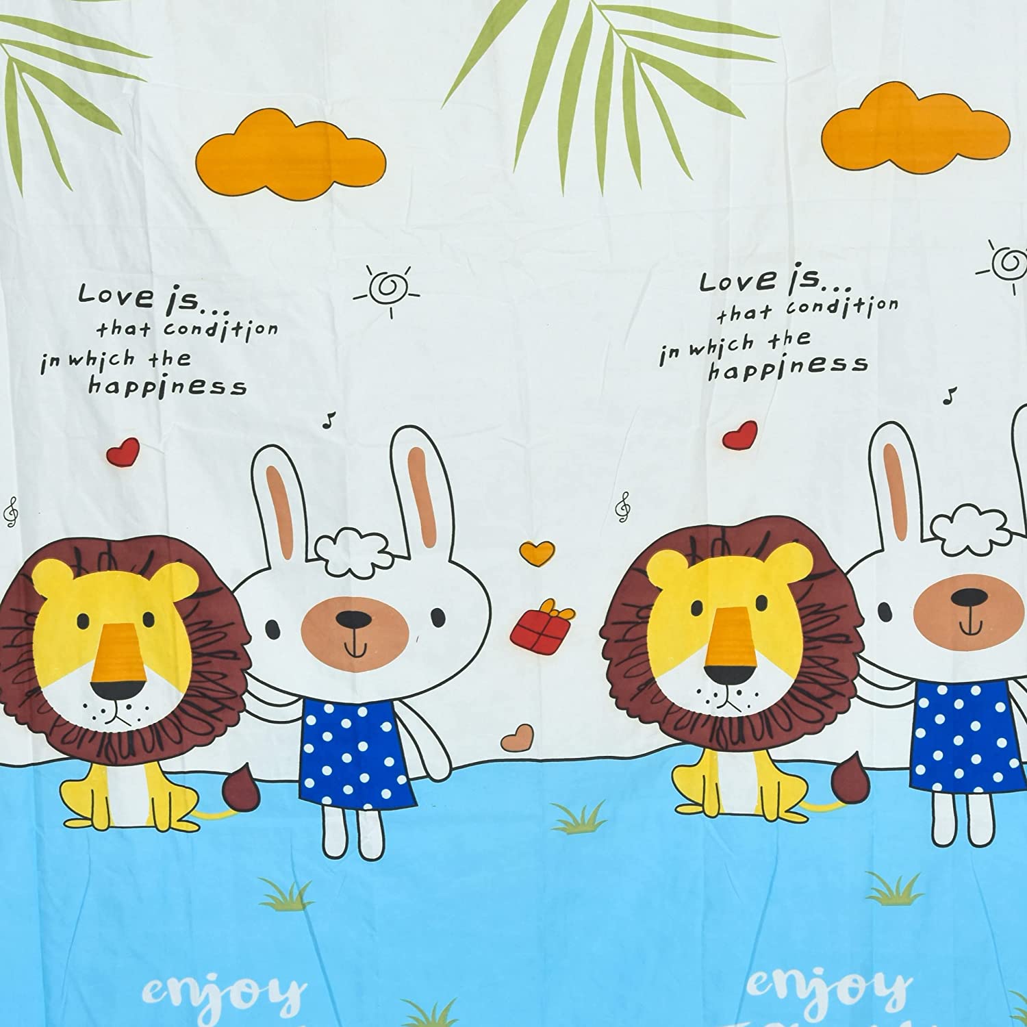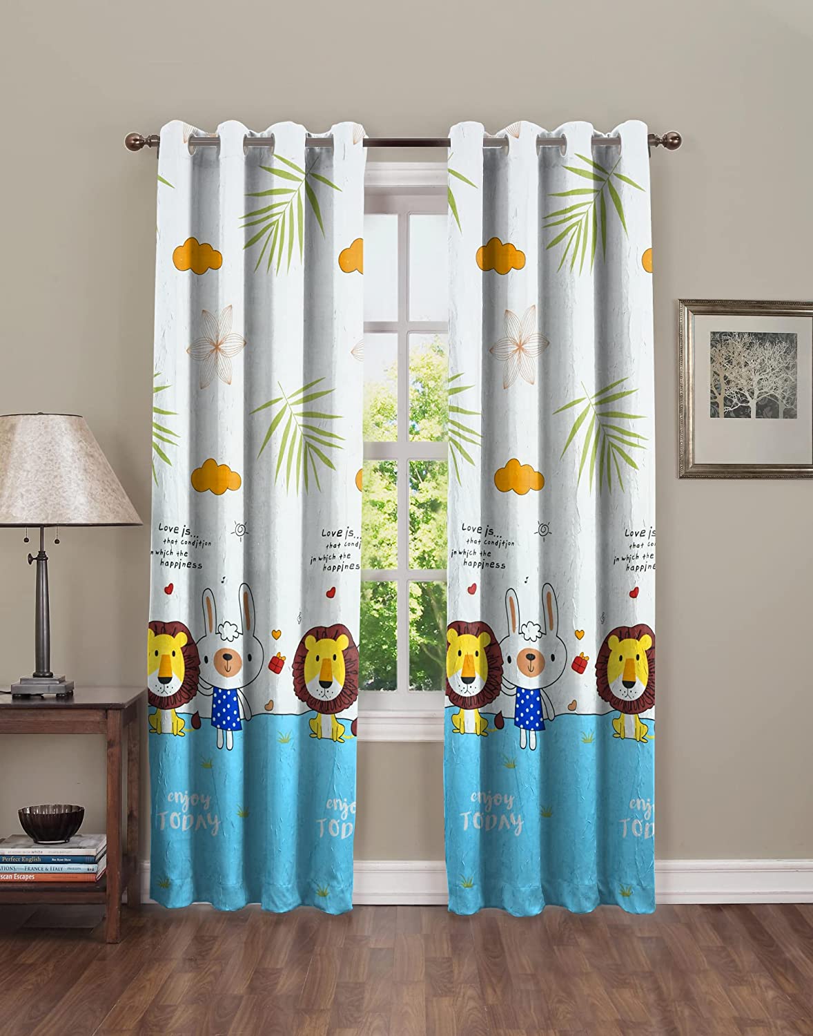 Polycotton Curtains for Door, Bedroom, Living Room Printed Set of 2 Curtains with Stainless Steel Rings (Cartoon, 7 Feet)