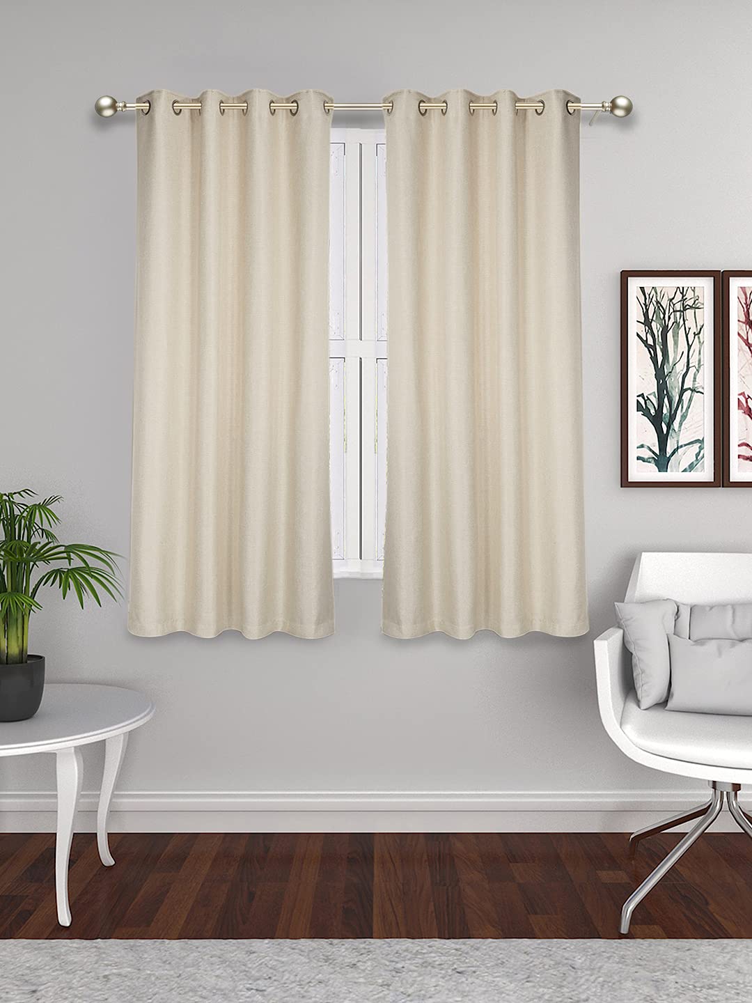 • Set of 2 Pcs Premium Jute Natural Feel Fabric Solid Cream Color Room Darkening Eyelet Window Curtain, 2 Pc Window Curtain 5ft, These Luxurious Curtains are Comes in Self Design Range Made With High Definition Quality, In Vibrant Designing With Rich And Sharp Colors